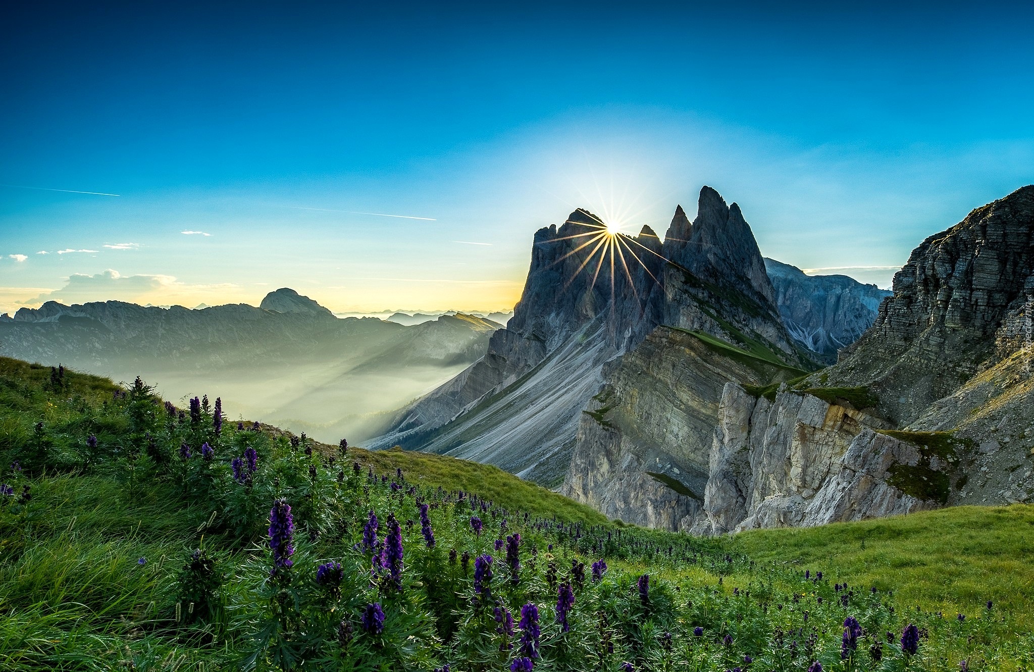 Edytor tapety: Górska łąką w delikatnych promieniach słońca