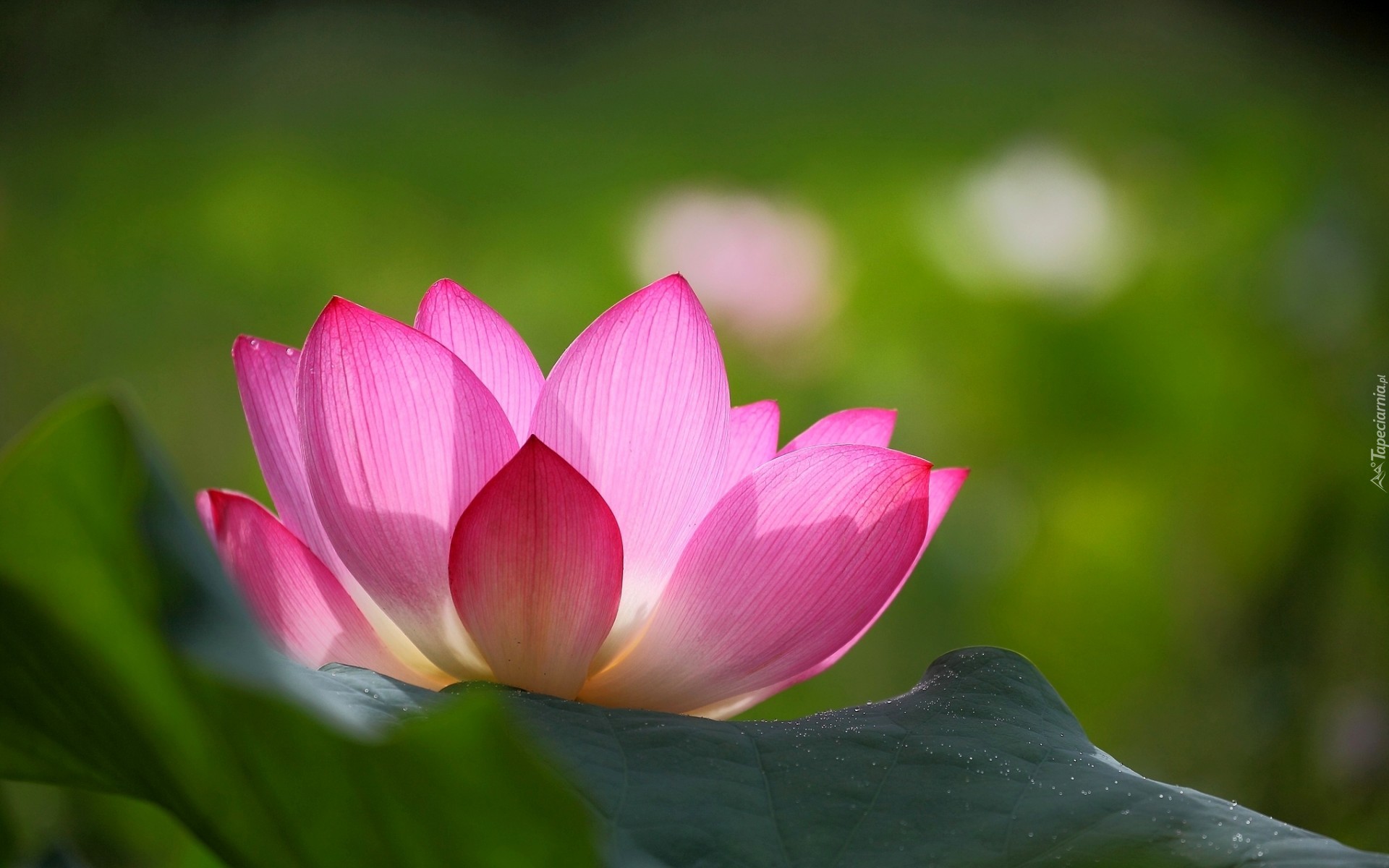 Edytor tapety: Różowy kwiat lotosu na zielonym tle