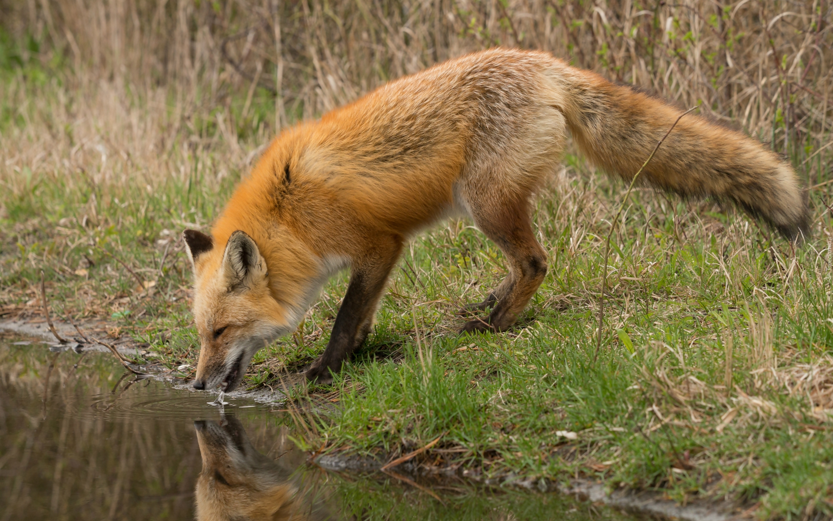 Edytor tapety: Spragniony lis nad brzegiem rzeki