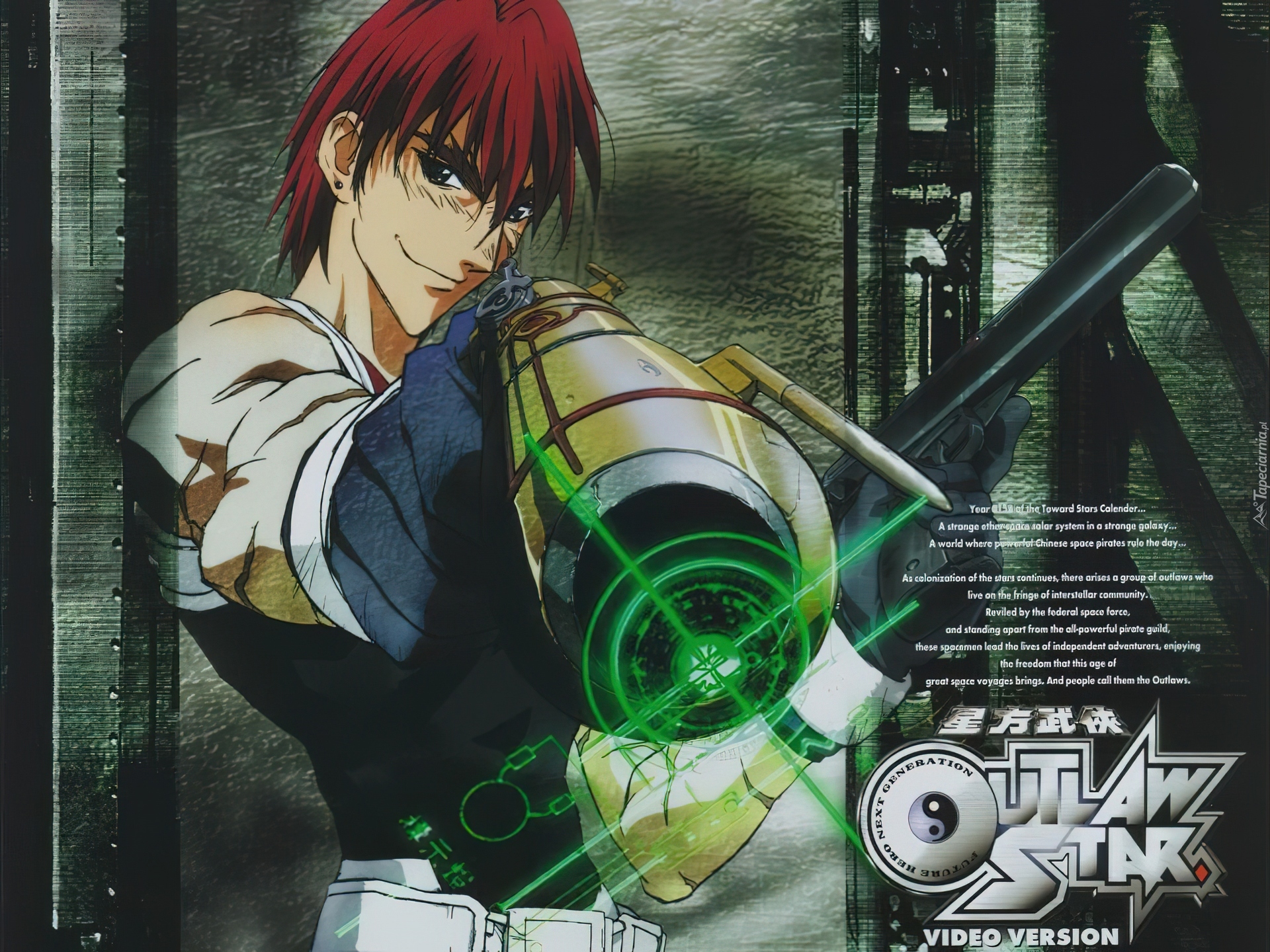 Edytor tapety: Outlaw Star, facet, broń, napisy