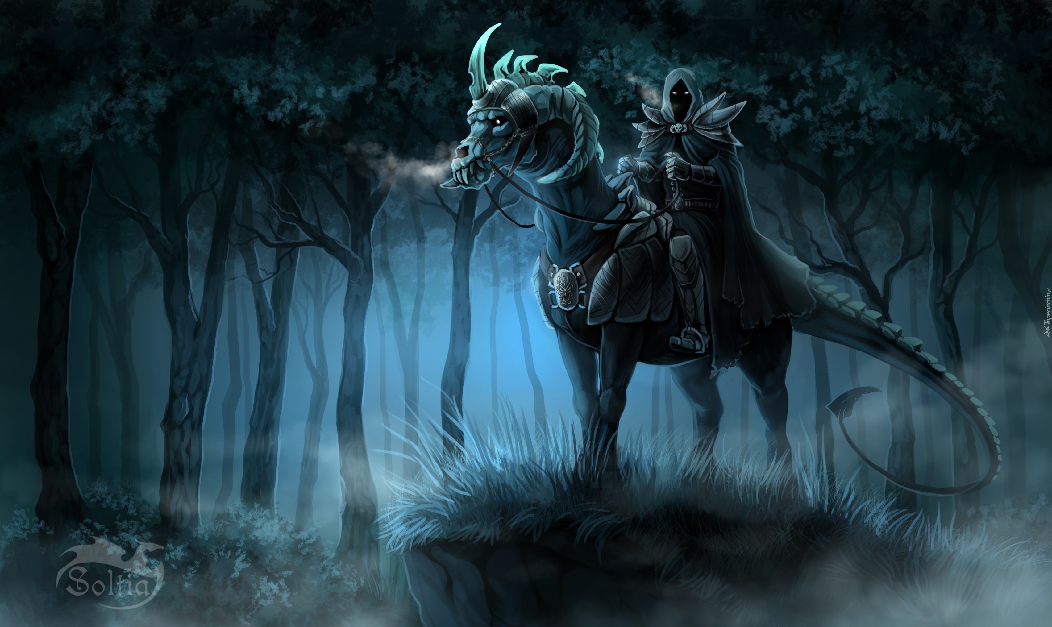 Edytor tapety: Mroczny jeździec w ciemnym lesie