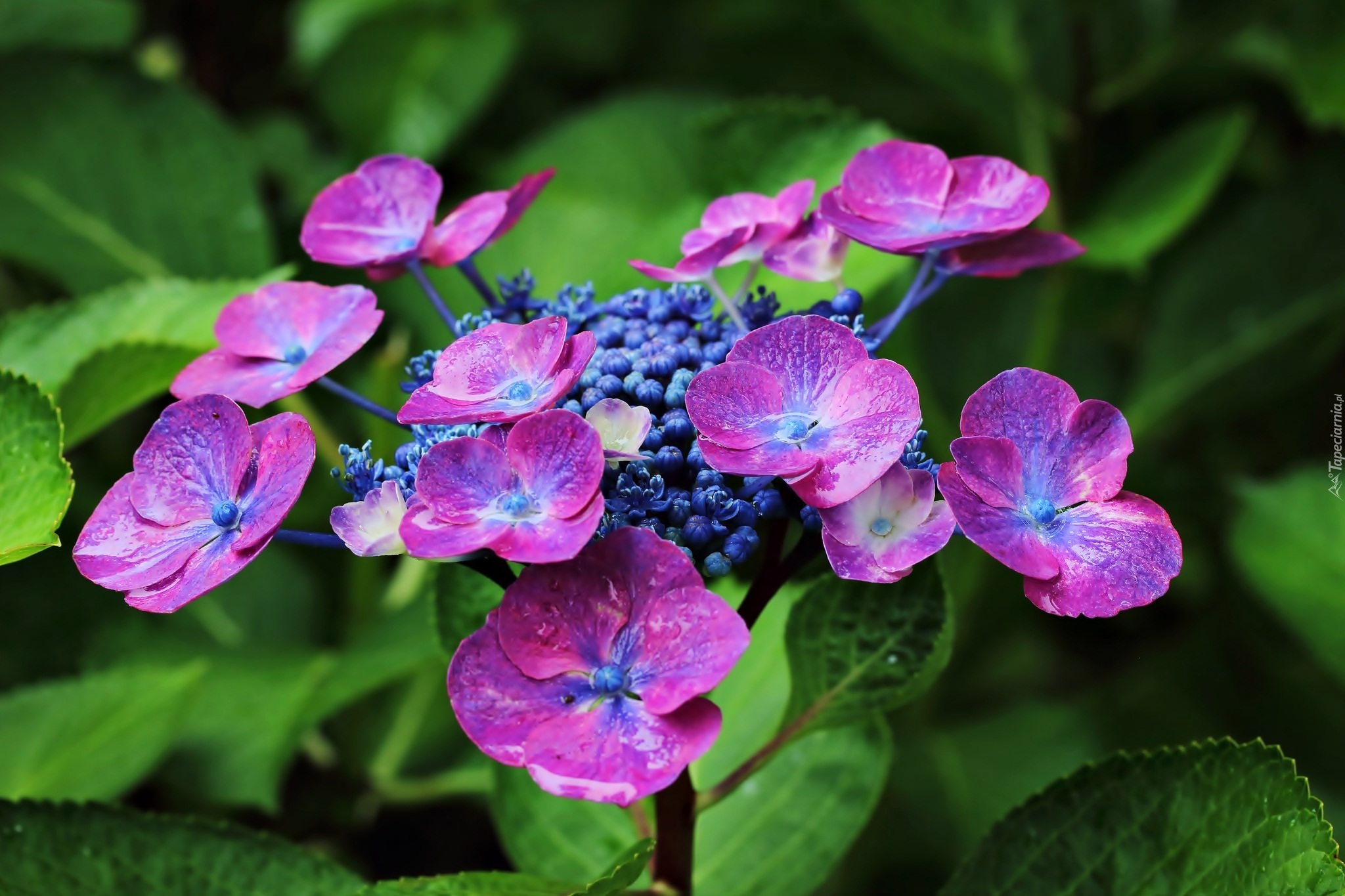 Edytor tapety: Kwiaty i pąki różowej hortensji