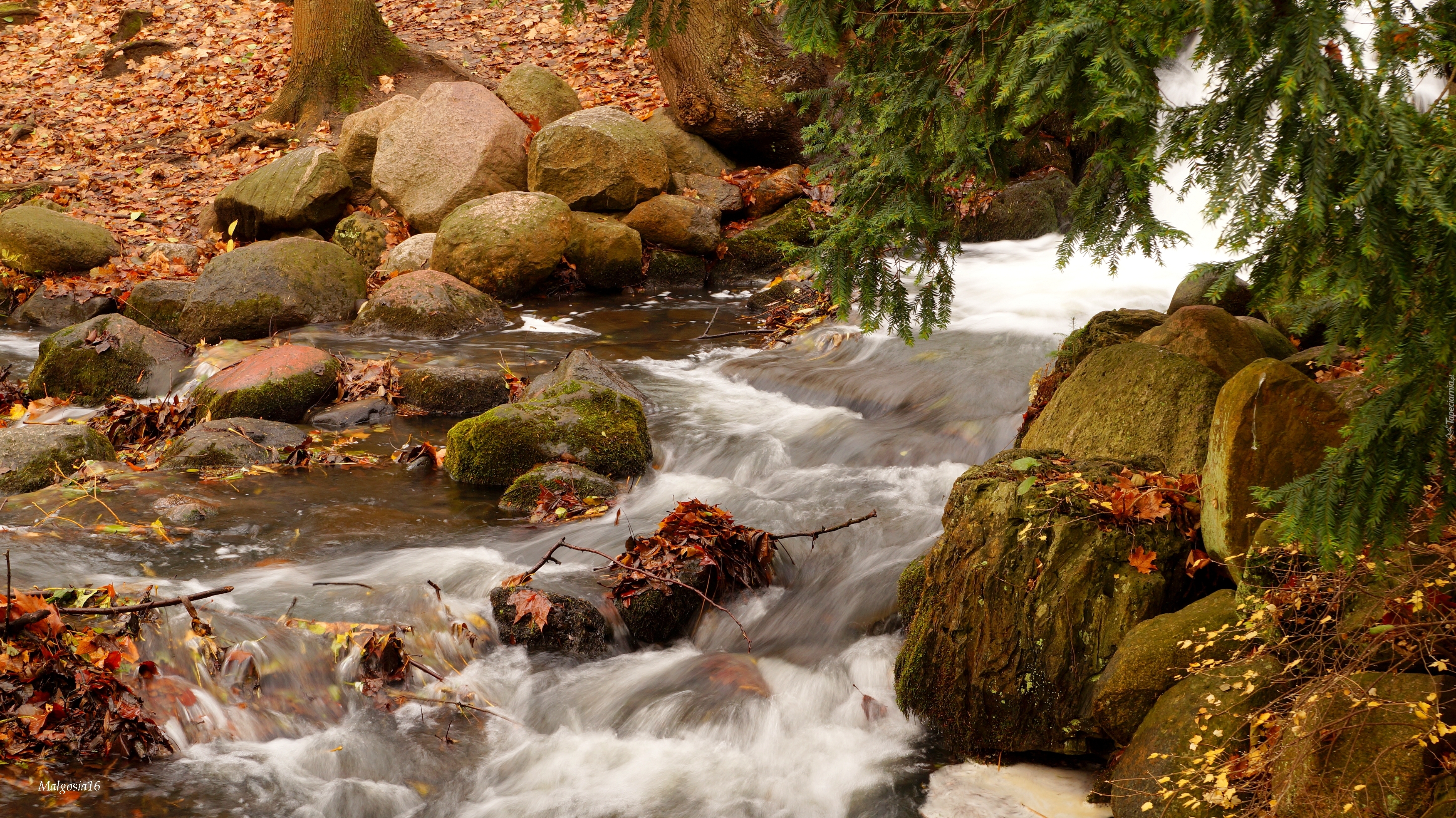 Edytor tapety: Strumyk płynie leniwie między kamieniami