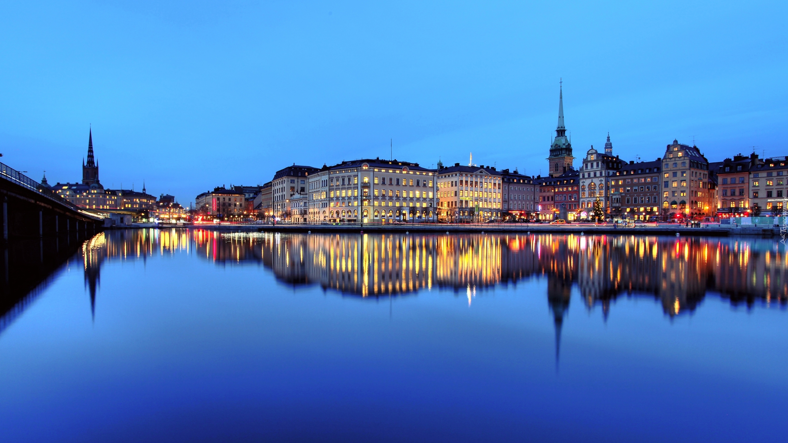 Edytor tapety: Sztokholm nocą odbijający się w wodzie
