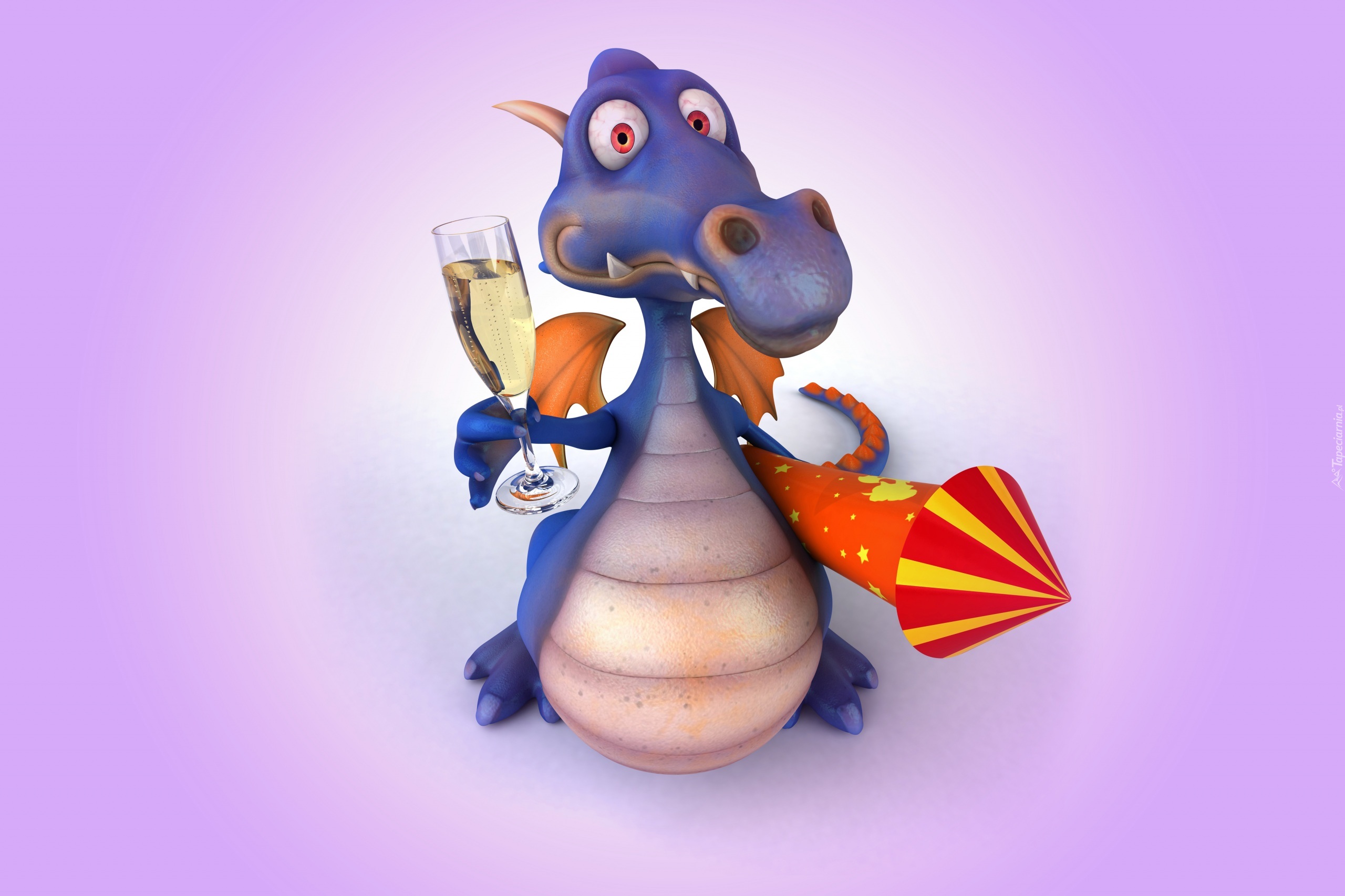 Edytor tapety: Fioletowy smok w grafice gotowy na Sylwestra