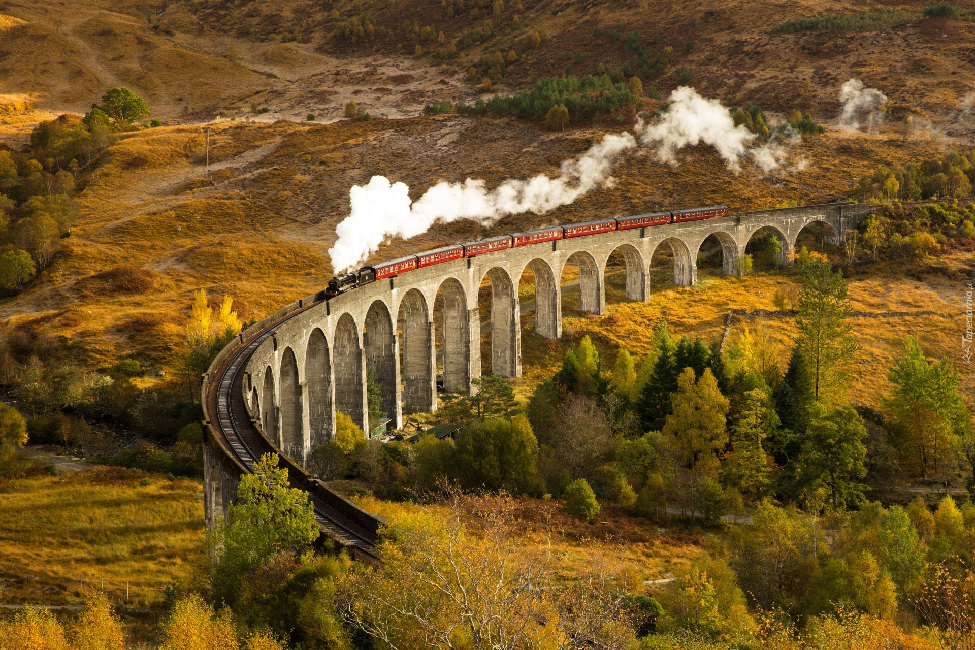 Edytor tapety: Pociąg parowy na moście