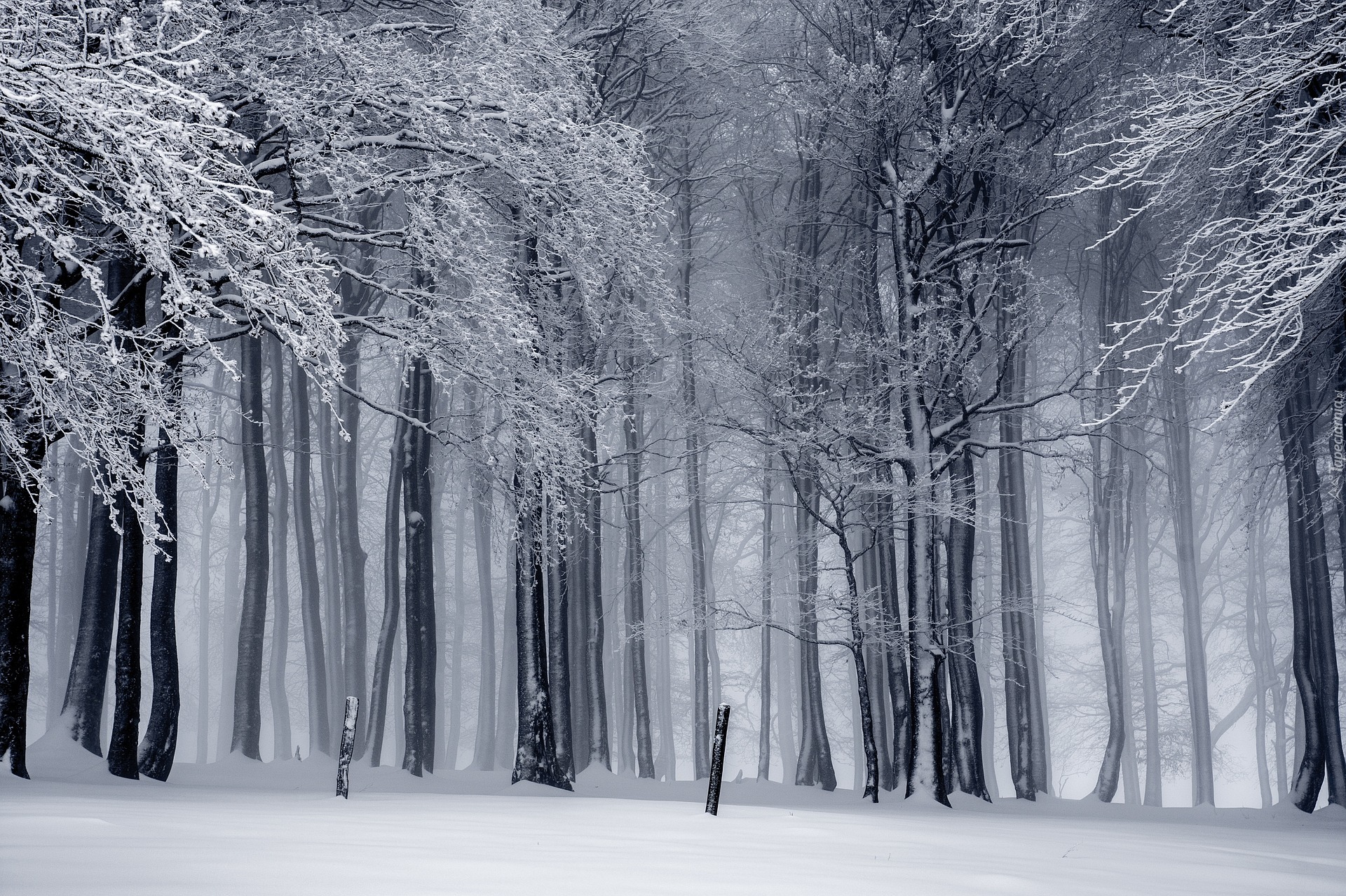 Edytor tapety: Zimowy las we mgle