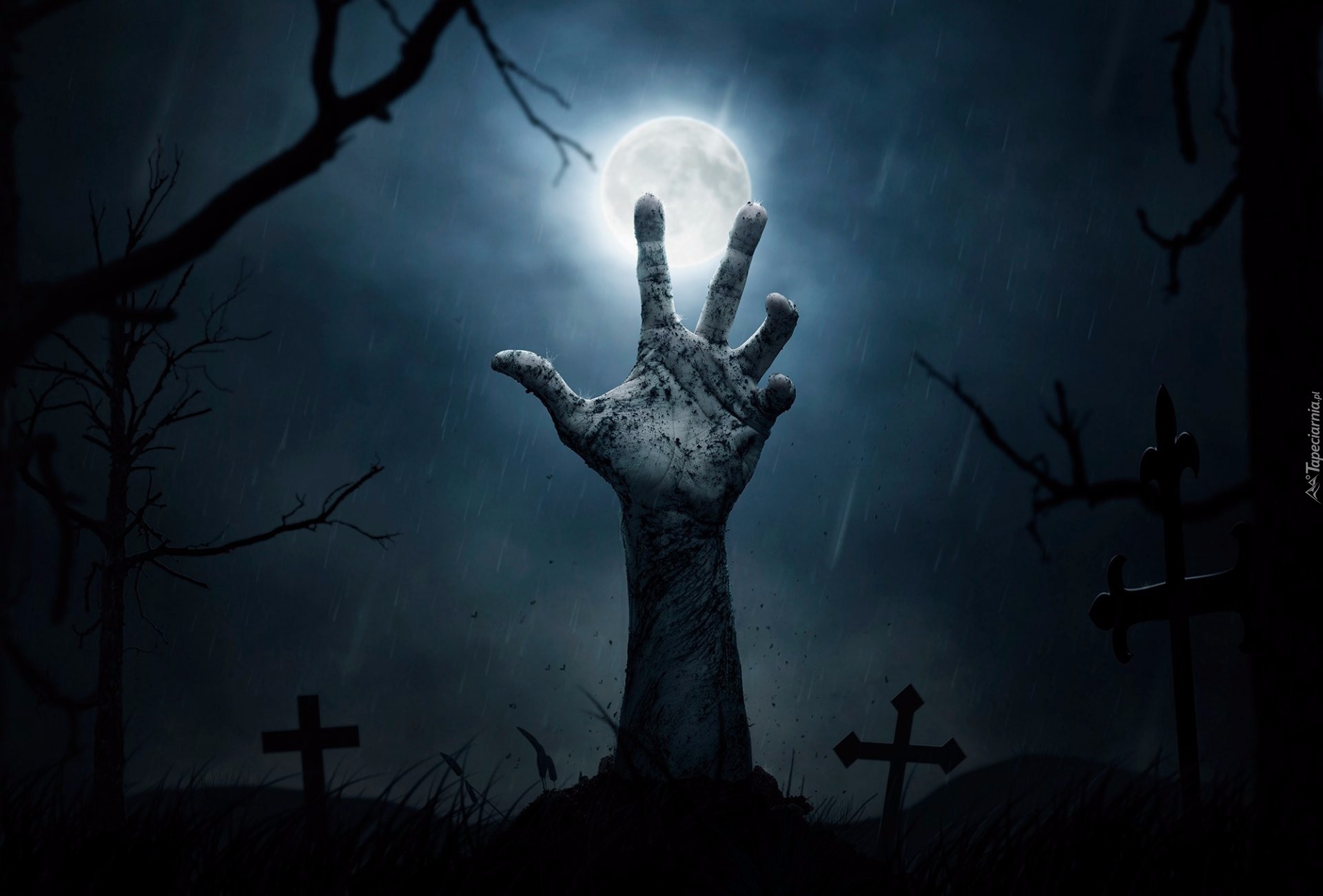 Edytor tapety: Dłoń z zaświatów na tle księżyca