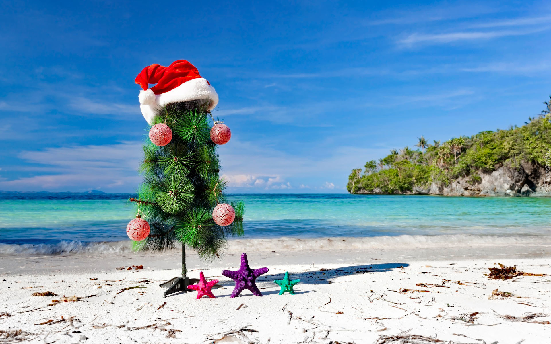 Edytor tapety: Nietypowa choinka nad brzegiem morza