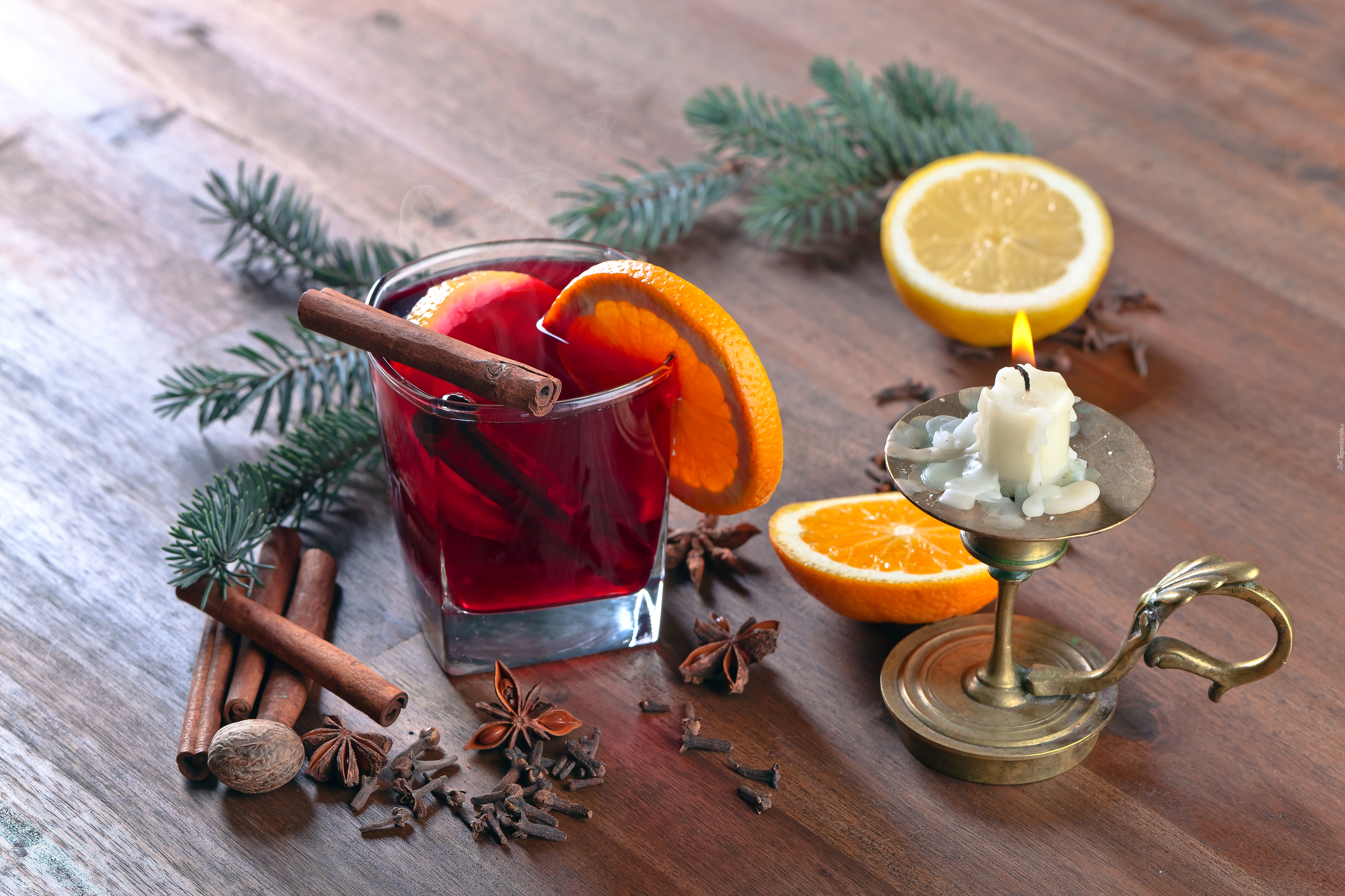 Edytor tapety: Owocowo-cynamonowa dekoracja ze świeczką