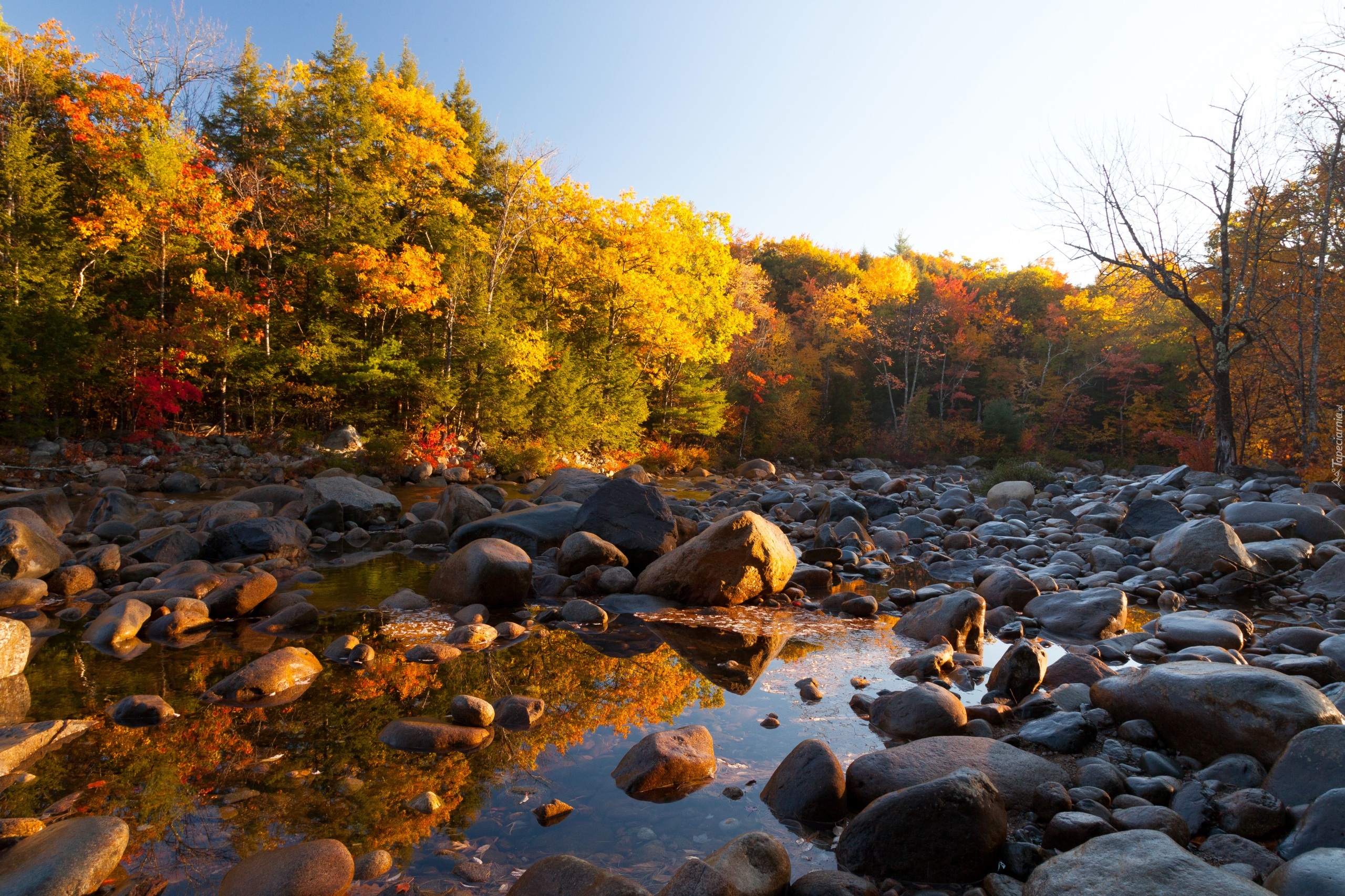 Edytor tapety: Płytka kamienista rzeczka na tle jesiennego lasu