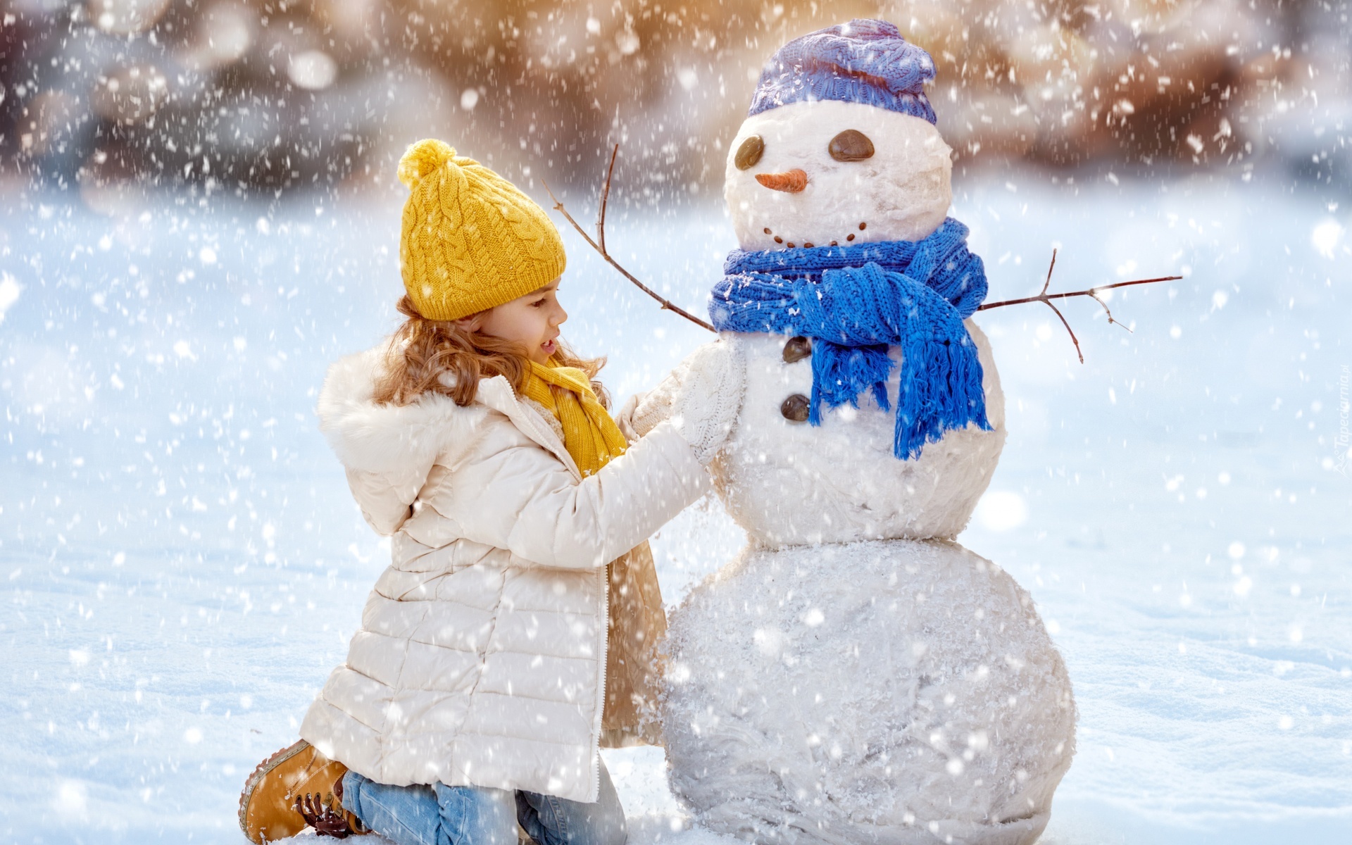 Edytor tapety: Dziewczynka lepiąca bałwana