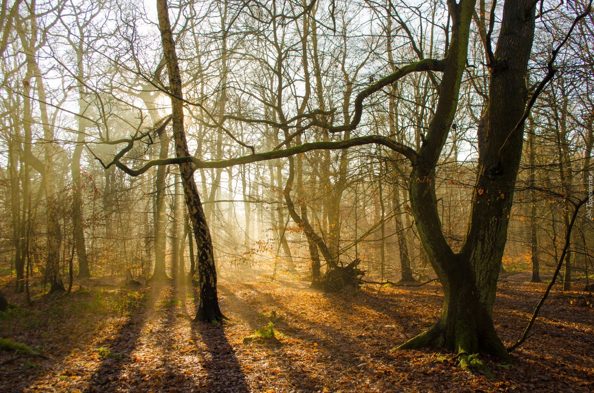 Edytor tapety: Słonko z mgiełką zagościło w lesie
