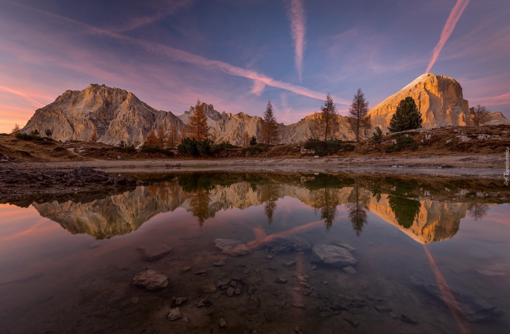 Edytor tapety: Kamienista rzeka u podnóża gór
