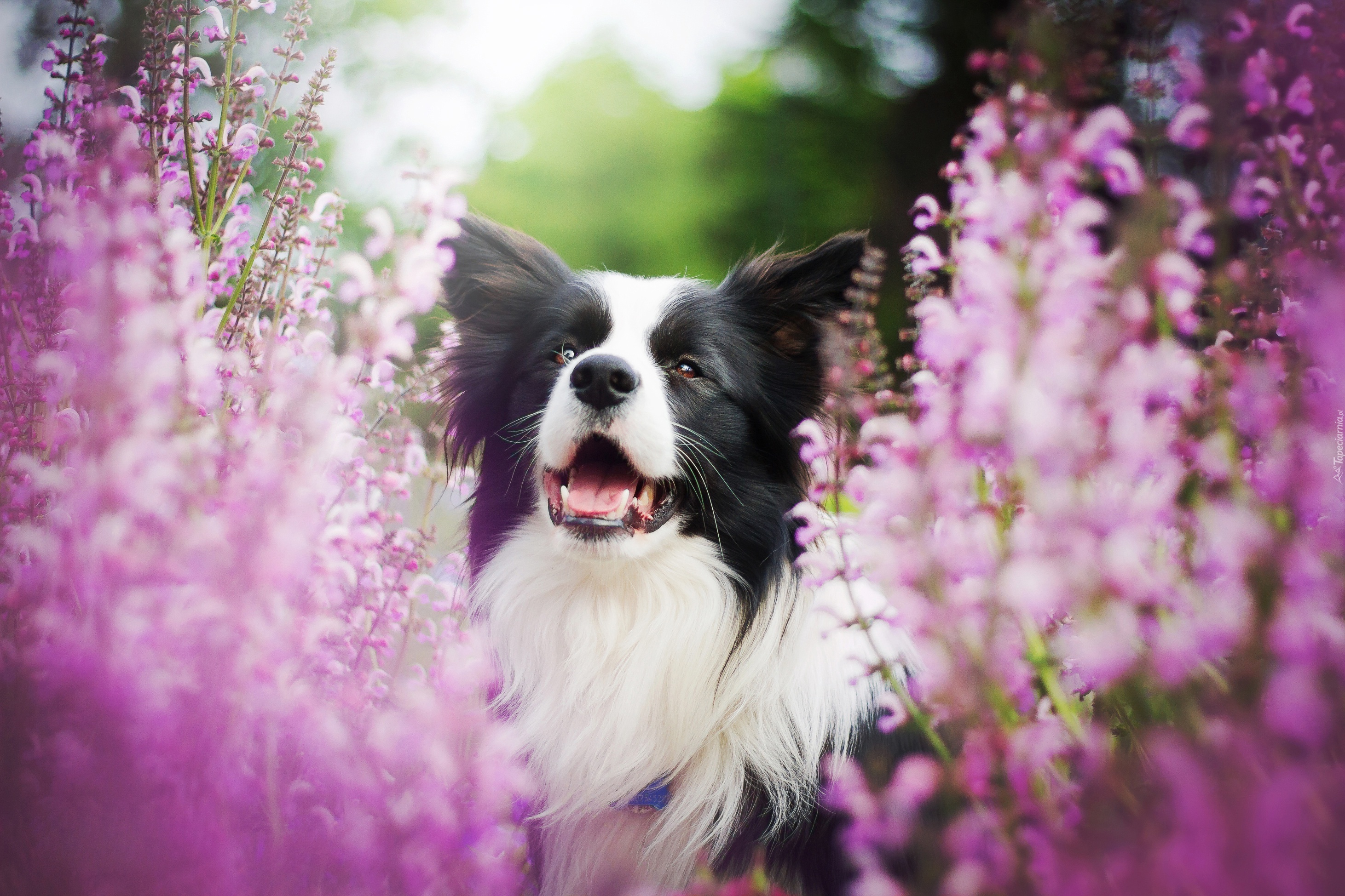 Edytor tapety: Radosny border collie na wrzosowej łące