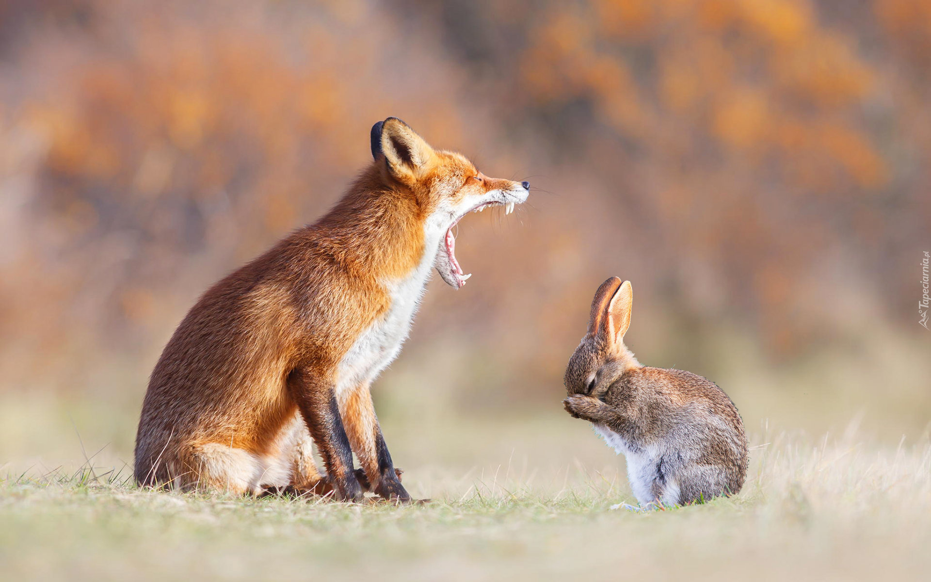 Edytor tapety: Lis skarcił zajączka