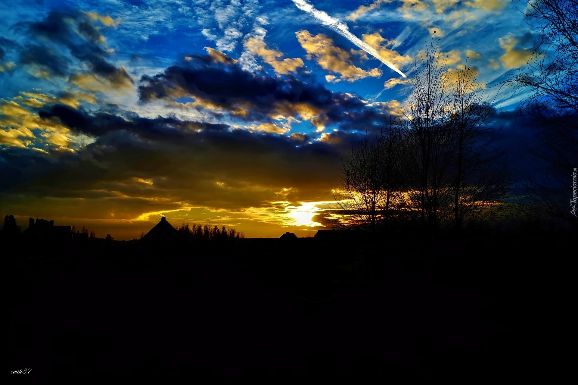 Edytor tapety: Zachód słońca nad domami