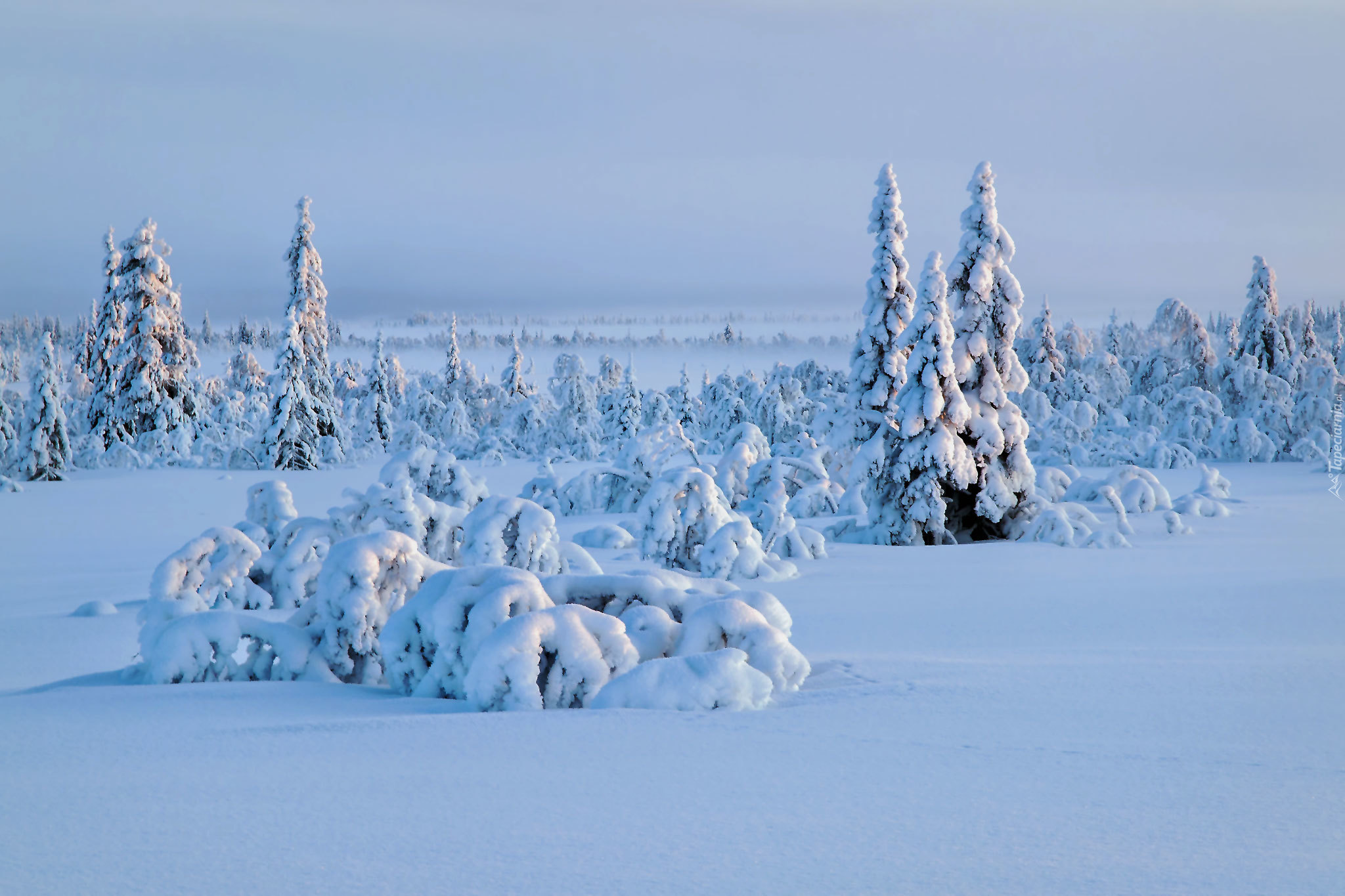 Edytor tapety: Czapy śniegu na drzewach