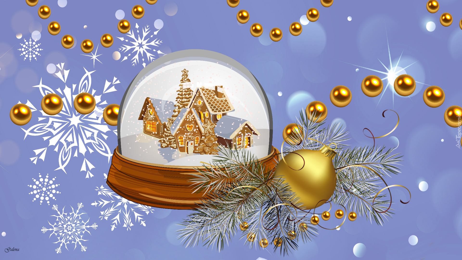 Edytor tapety: Graficzna kula z domkami w świątecznej oprawie