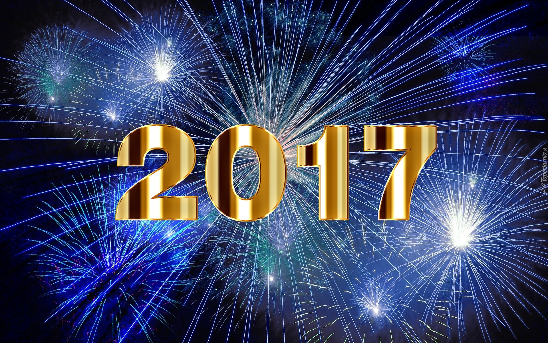 Edytor tapety: 2017 rok na tle sylwestrowych fajerwerków