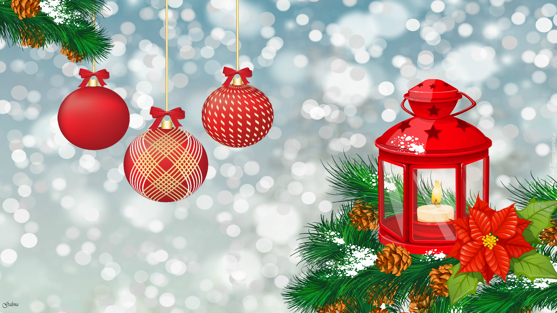 Edytor tapety: Świąteczny lampion i bombki w grafice 2D