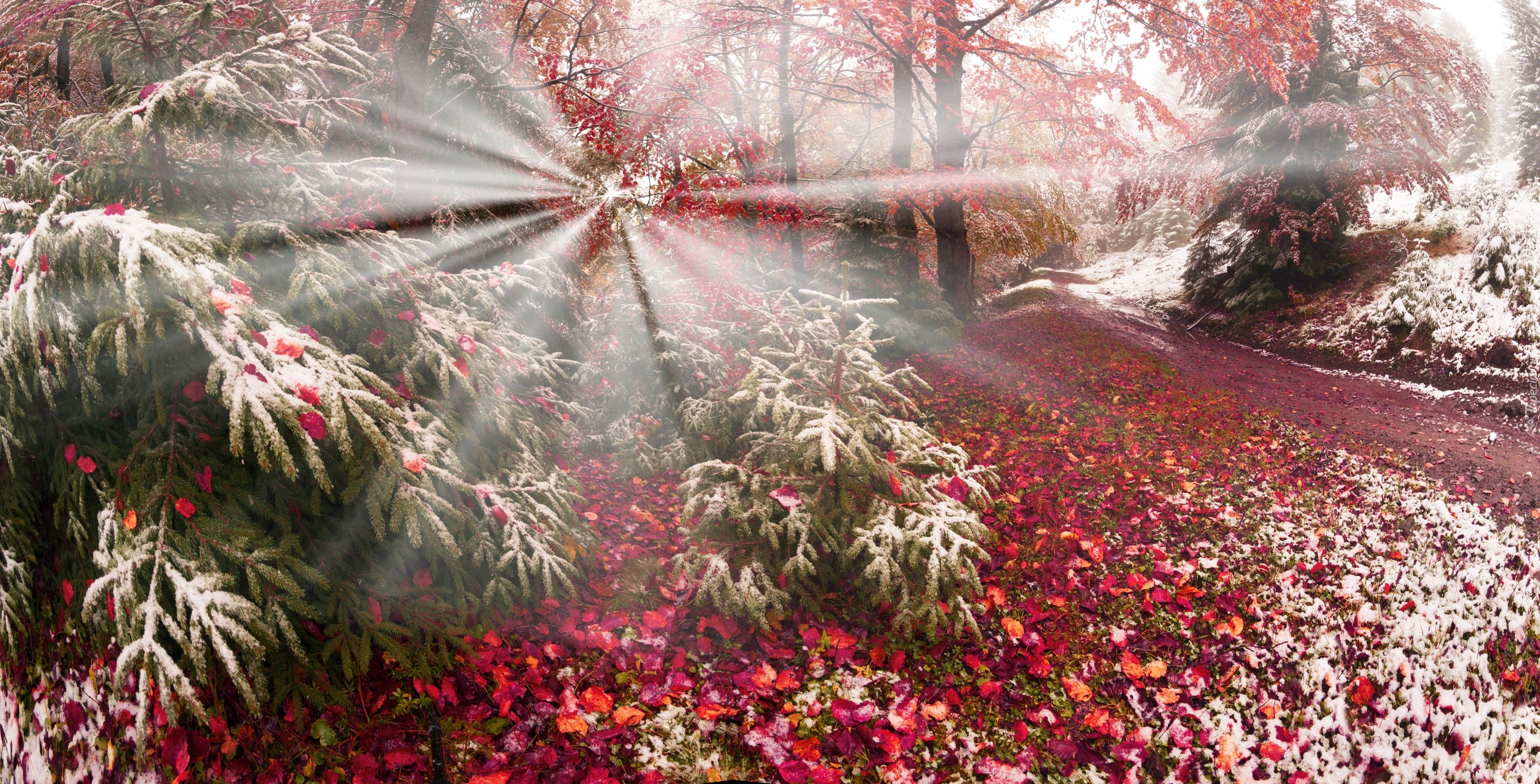 Edytor tapety: Słońce z ciekawością zajrzało do lasu