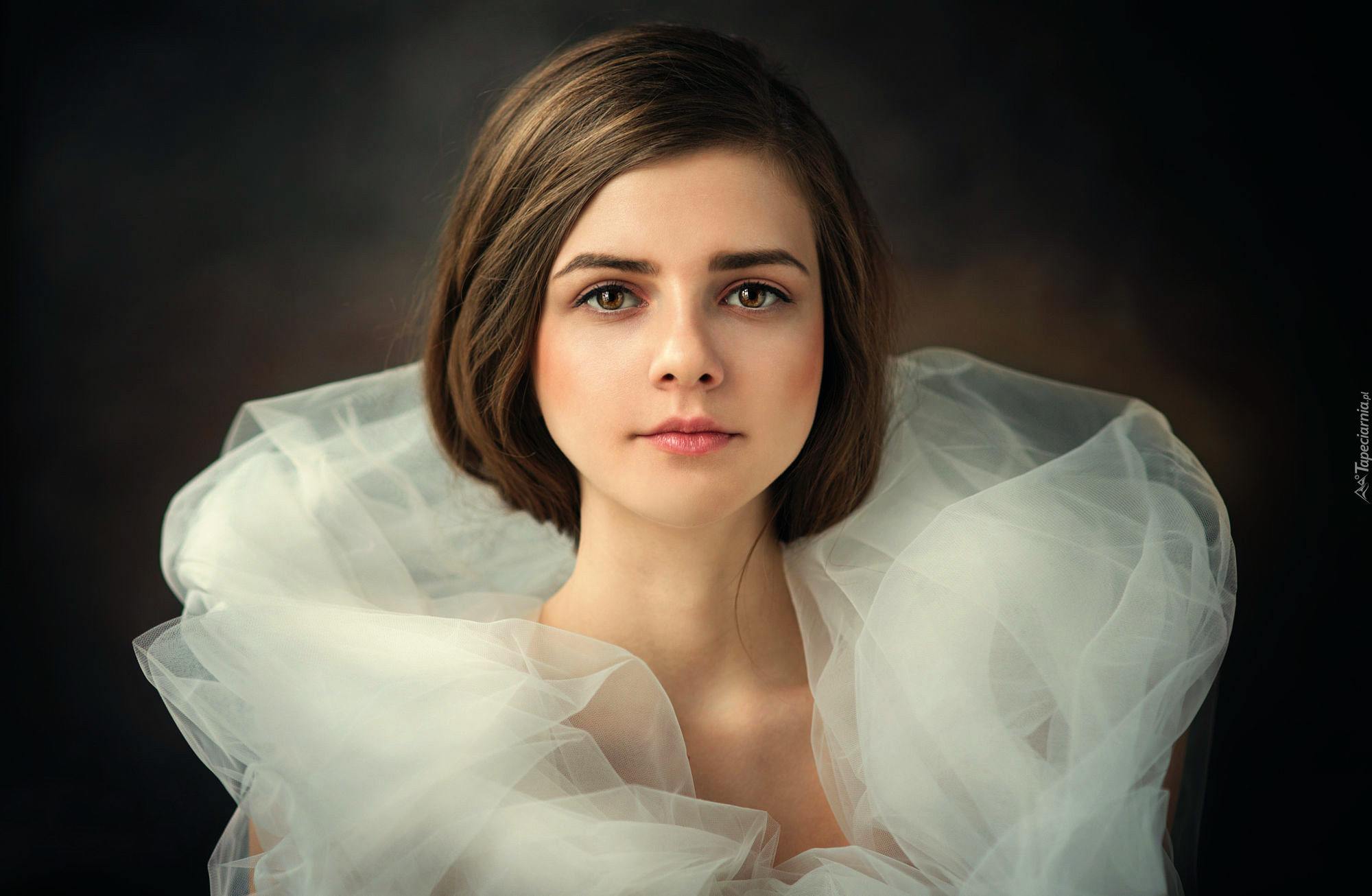 Edytor tapety: Portret dziewczyny w białym tiulu