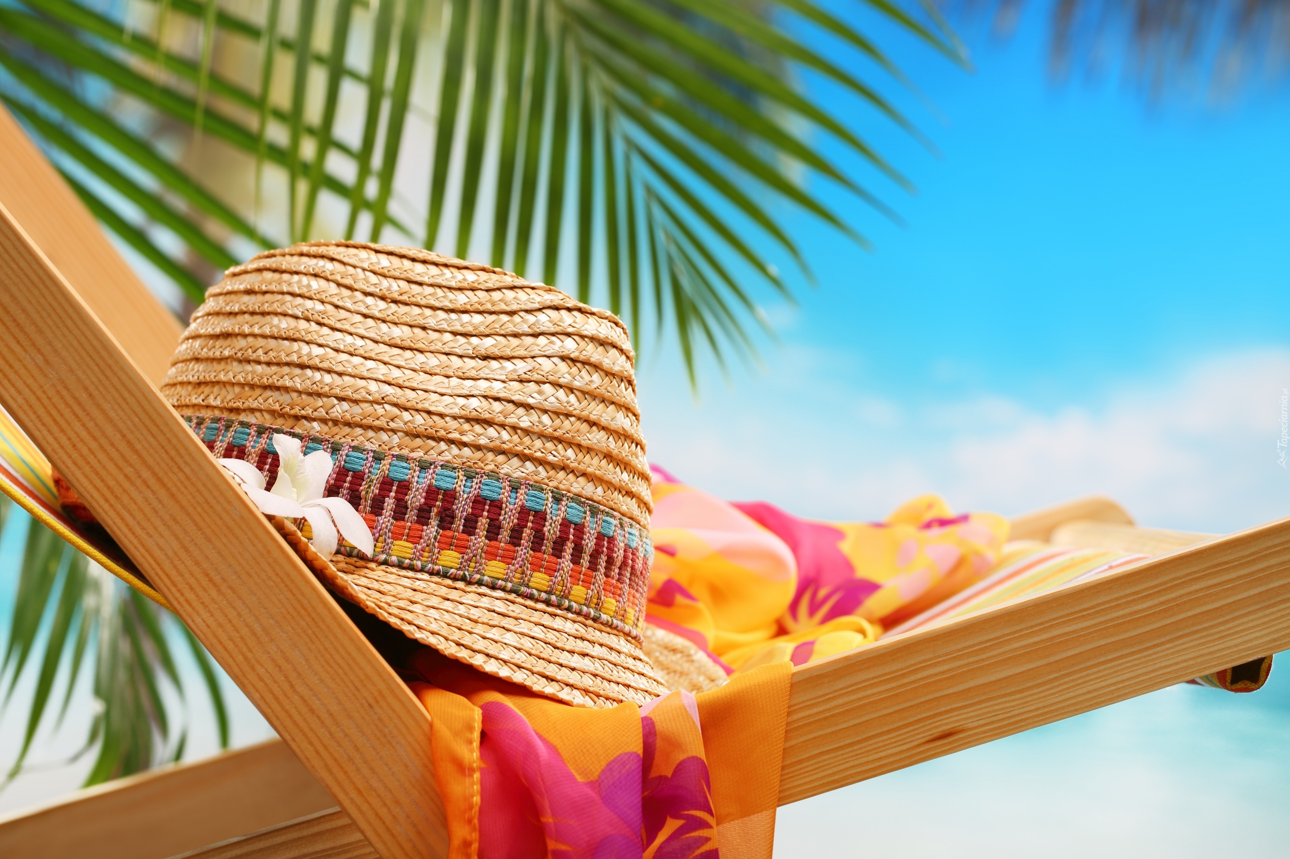 Edytor tapety: Hamak i kapelusz pod palmą na plaży