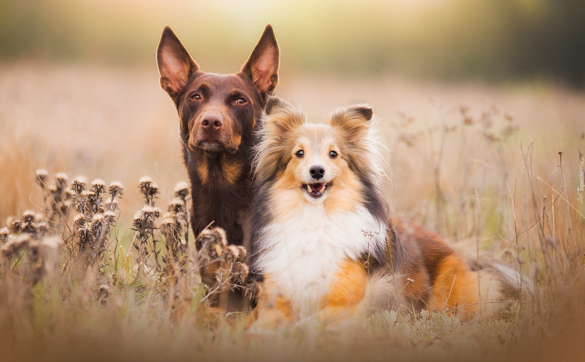 Edytor tapety: Owczarek szetlandzki i pinczer wylegują się na łące