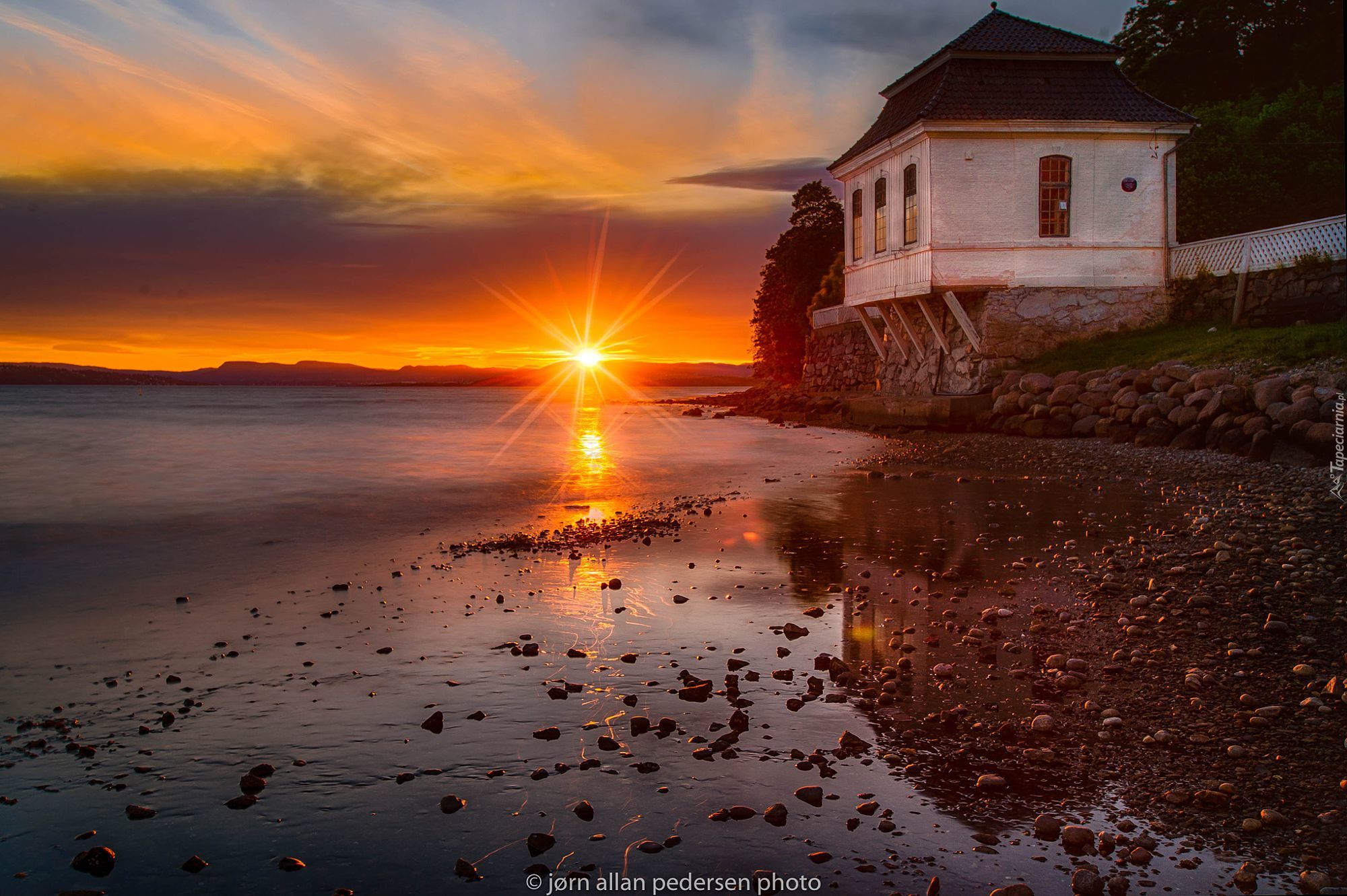 Edytor tapety: Dom na wybrzeżu o zachodzie słońca