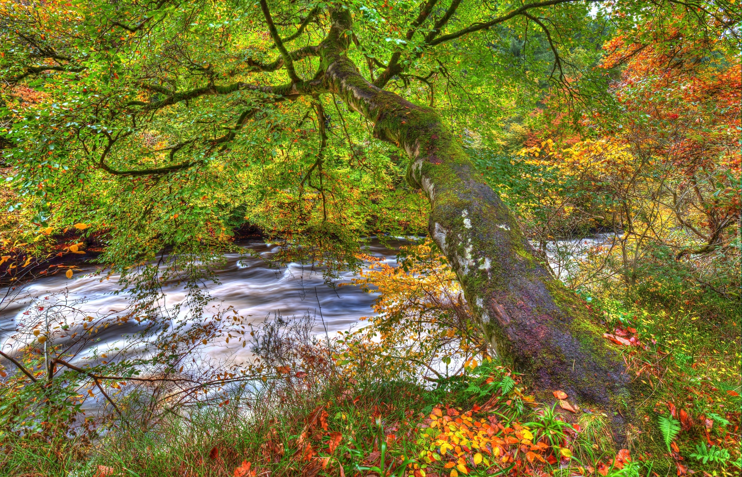 Edytor tapety: Jesienne drzewo pochylone nad potokiem