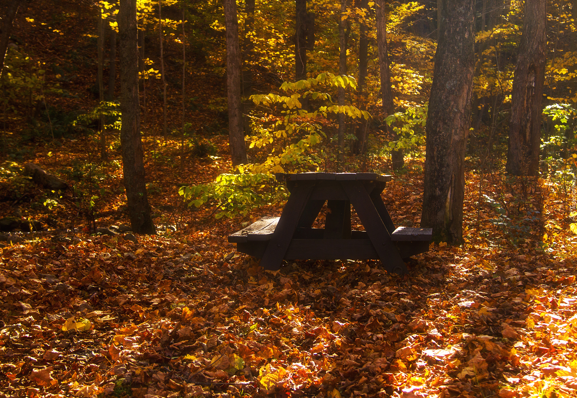Edytor tapety: Ławka w jesiennym parku