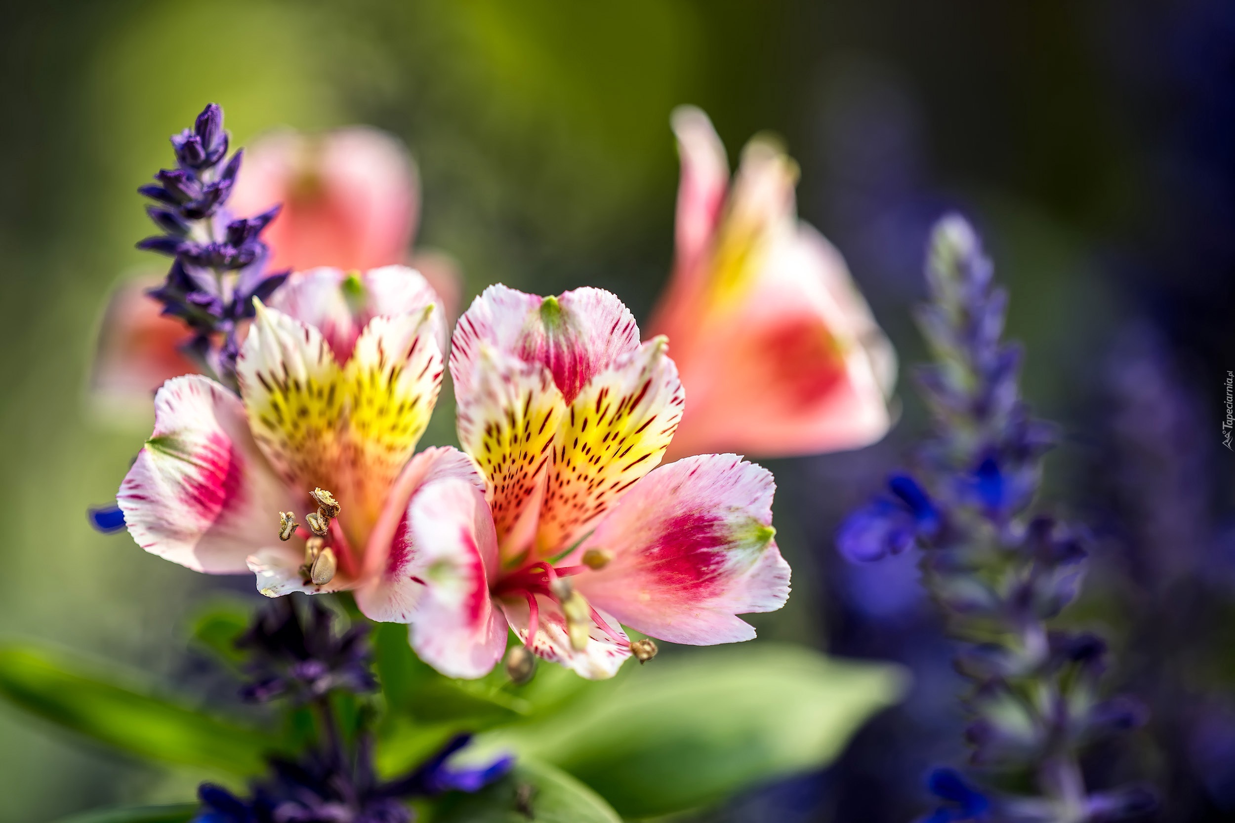 Edytor tapety: Kolorowe kwiaty alstremerii z szałwią w tle