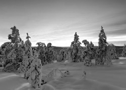 Edytor tapety: Zimowy zachód słońca nad drzewami
