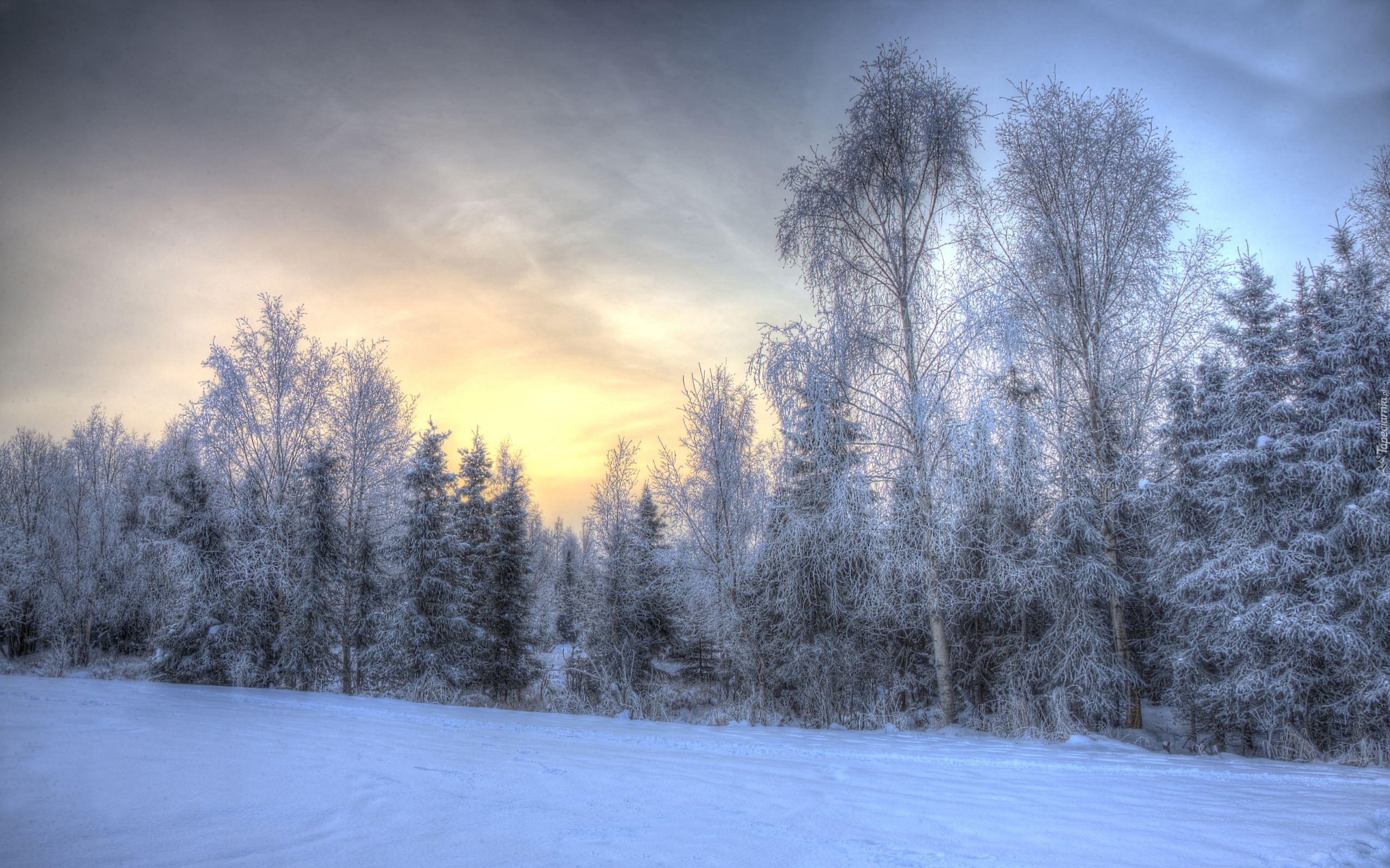 Edytor tapety: Zimowy las o poranku