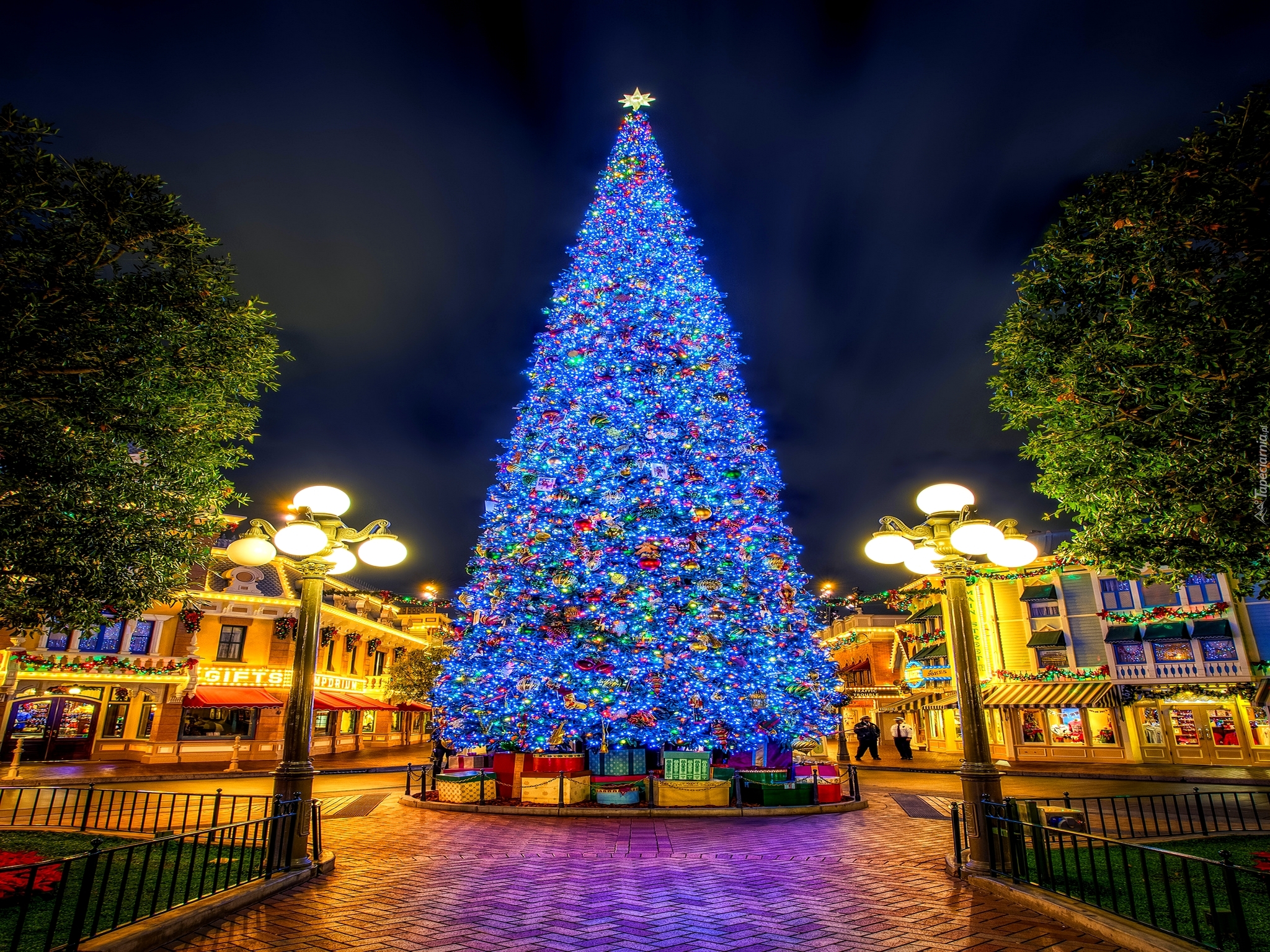 Edytor tapety: Kolorowa choinka w mieście