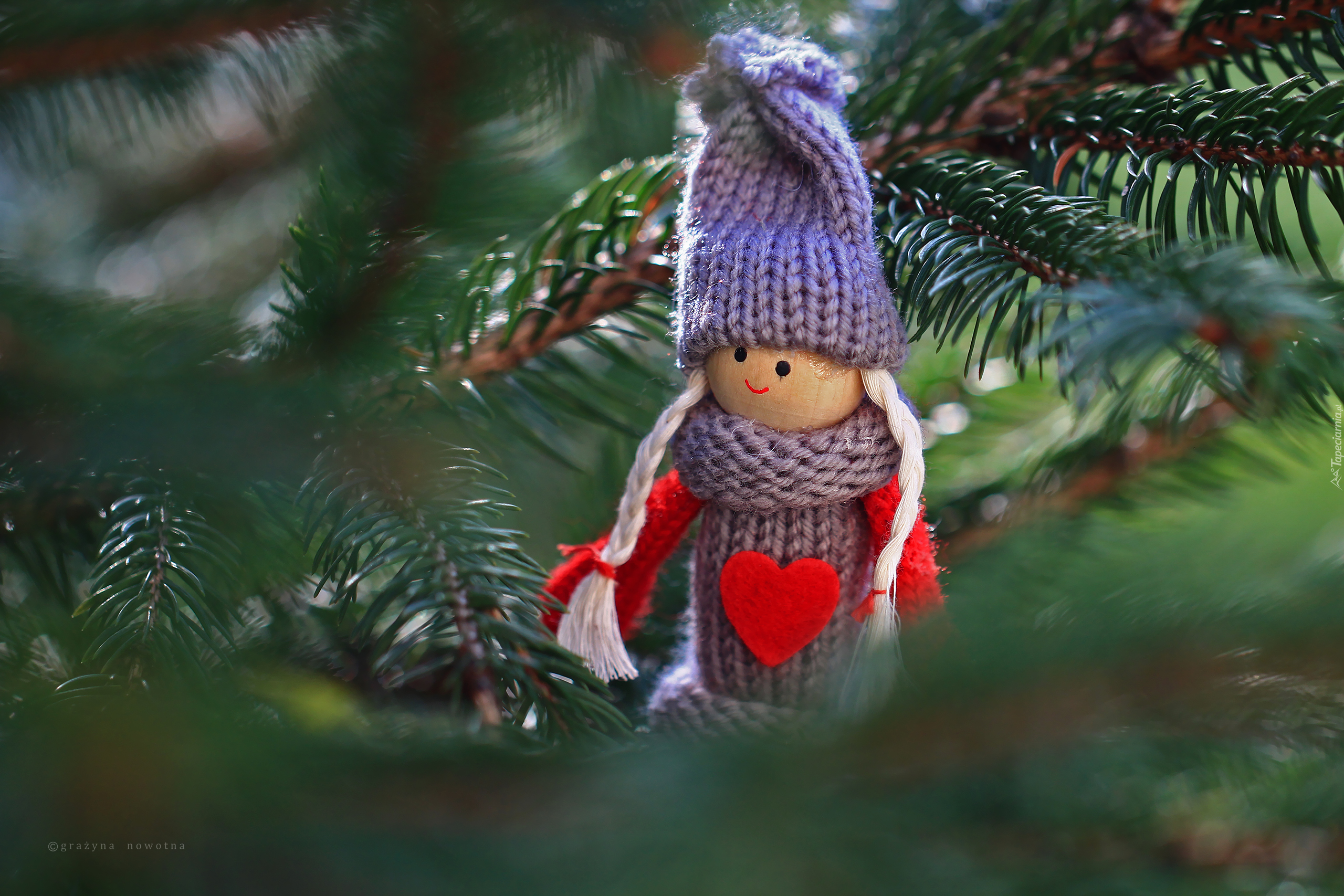 Edytor tapety: Wełniana laleczka na gałązce jodłowej