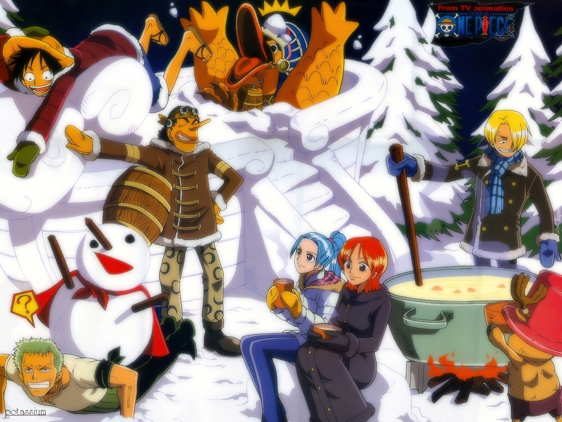 Edytor tapety: One Piece, bałwan, ludzie