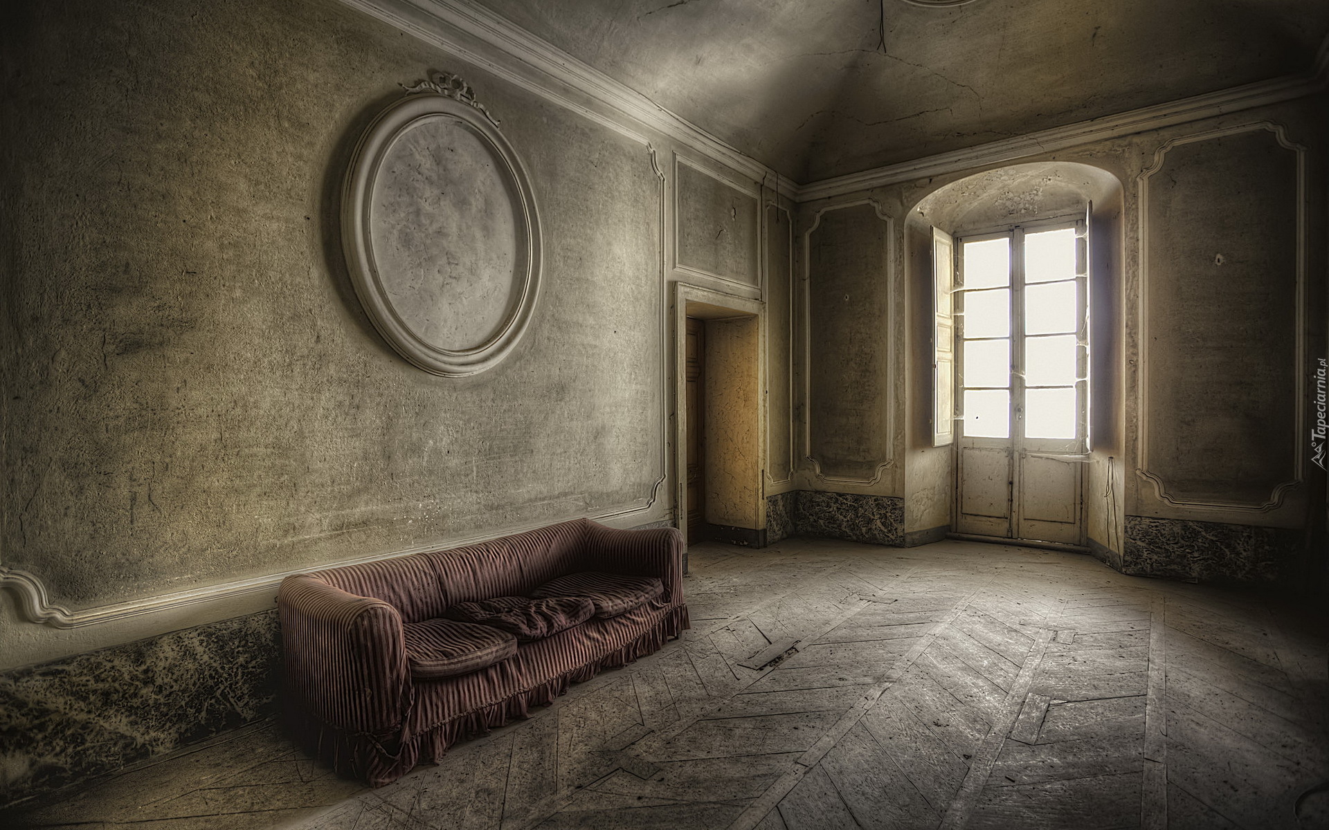 Edytor tapety: Stare wnętrze z sofą i obrazem