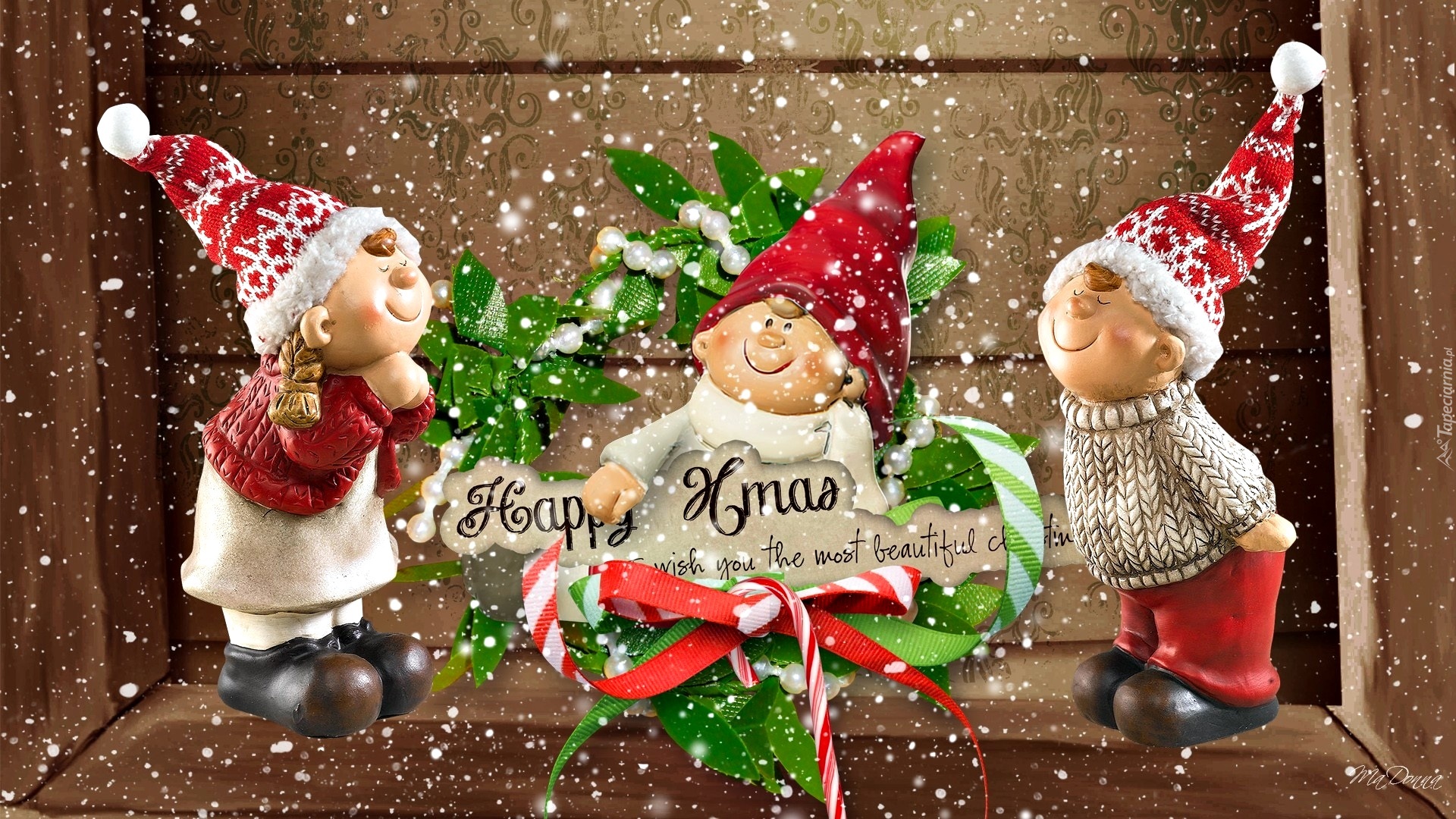 Edytor tapety: Wesołe krasnale z życzeniami bożonarodzeniowymi