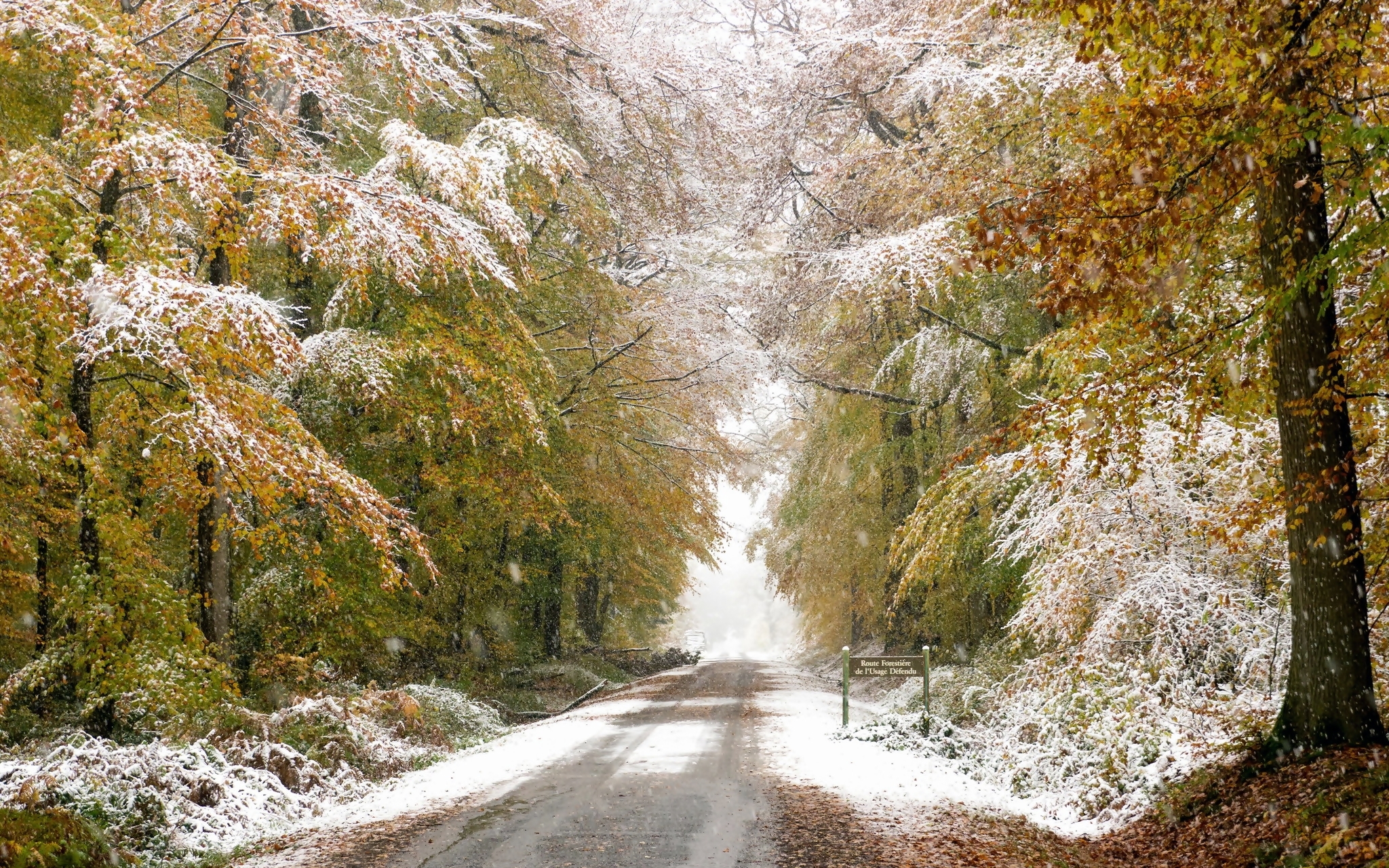 Edytor tapety: Droga biegnąca przez zimowy las