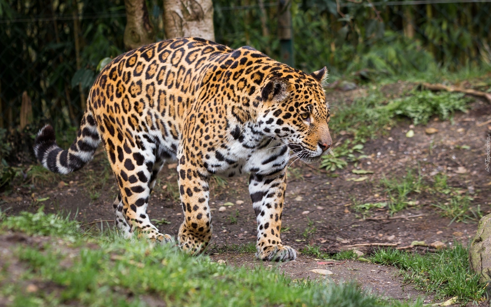 Edytor tapety: Jaguar spaceruje leśną dróżką
