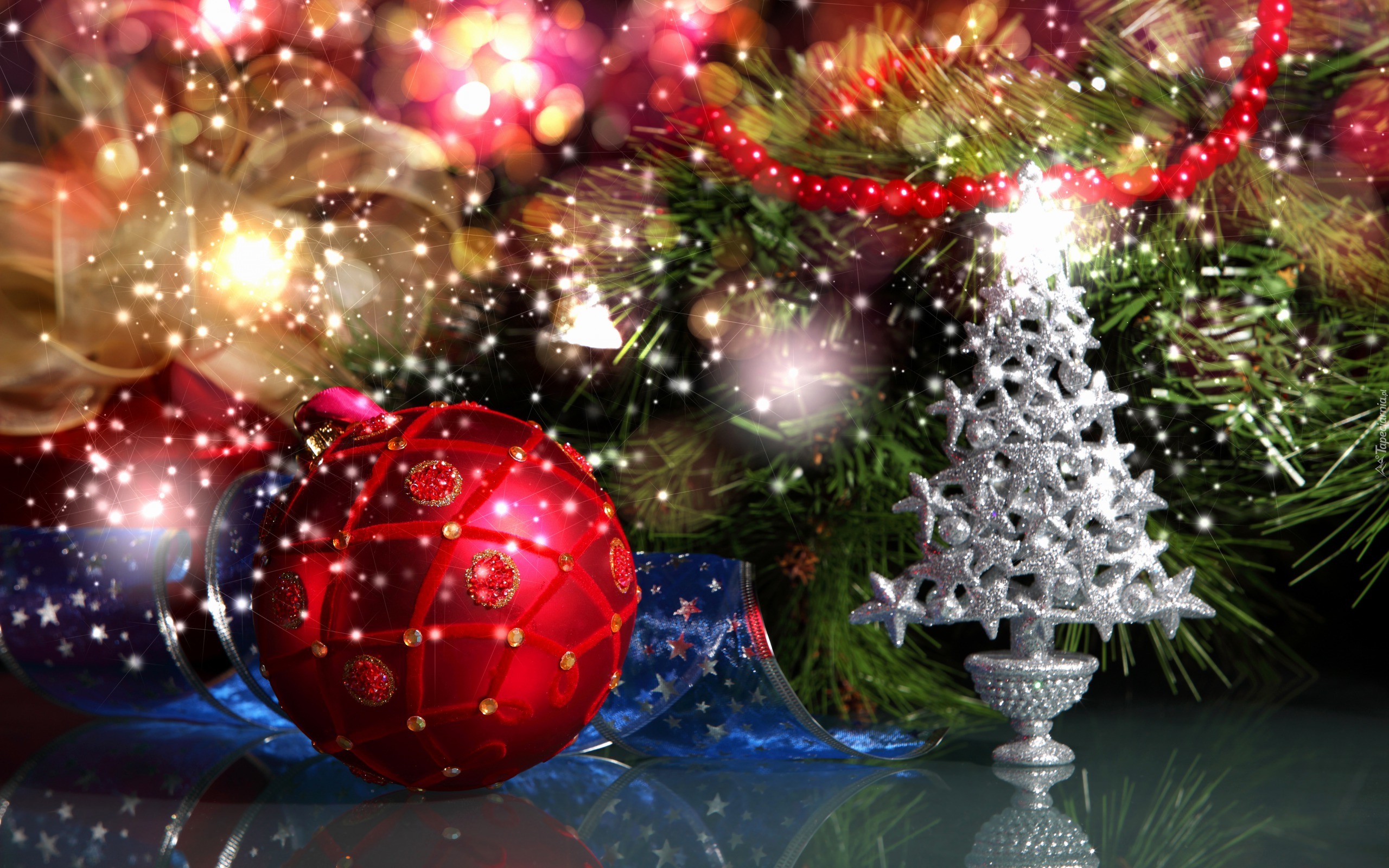 Edytor tapety: Dekoracja świąteczna z bombką i choinką