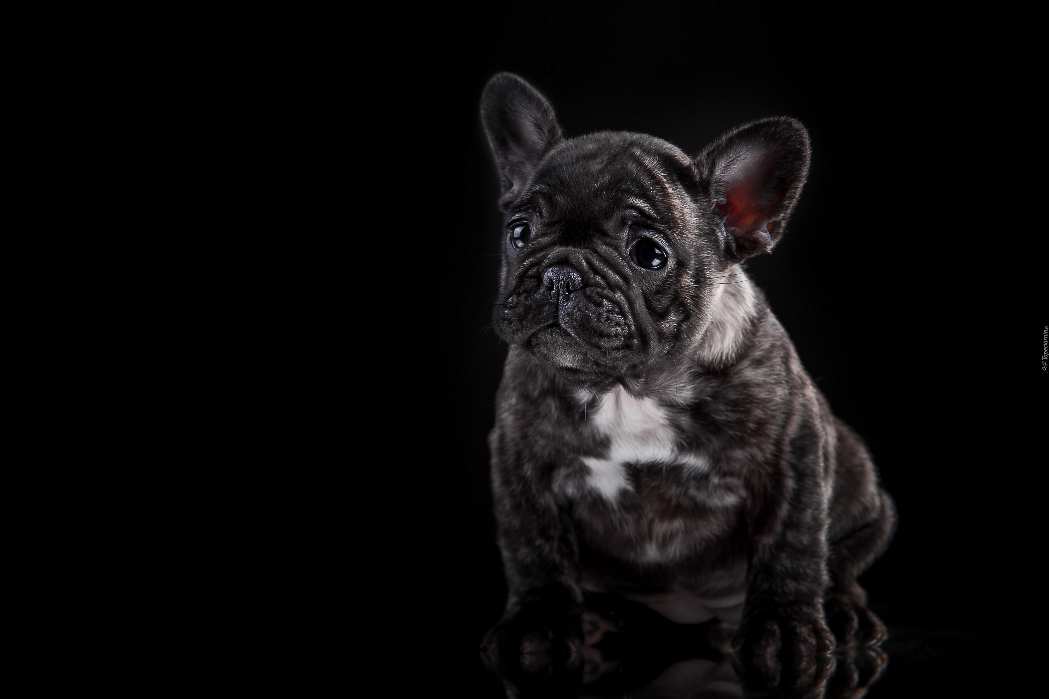 Edytor tapety: Szczeniaczek buldoga francuskiego na czarnym tle