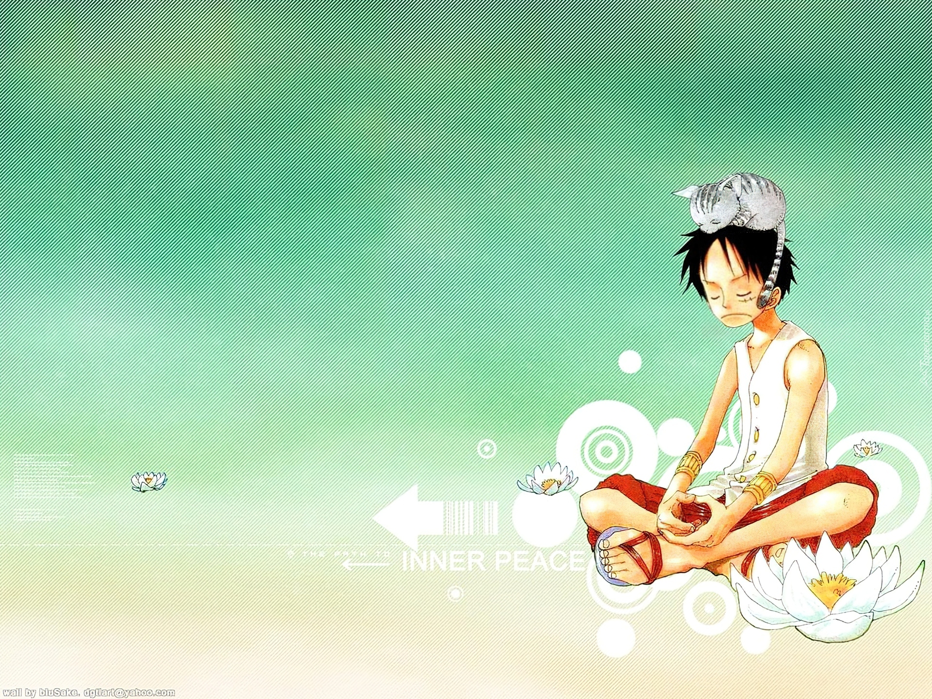 Edytor tapety: One Piece, kotek, kwiatek, chłopak