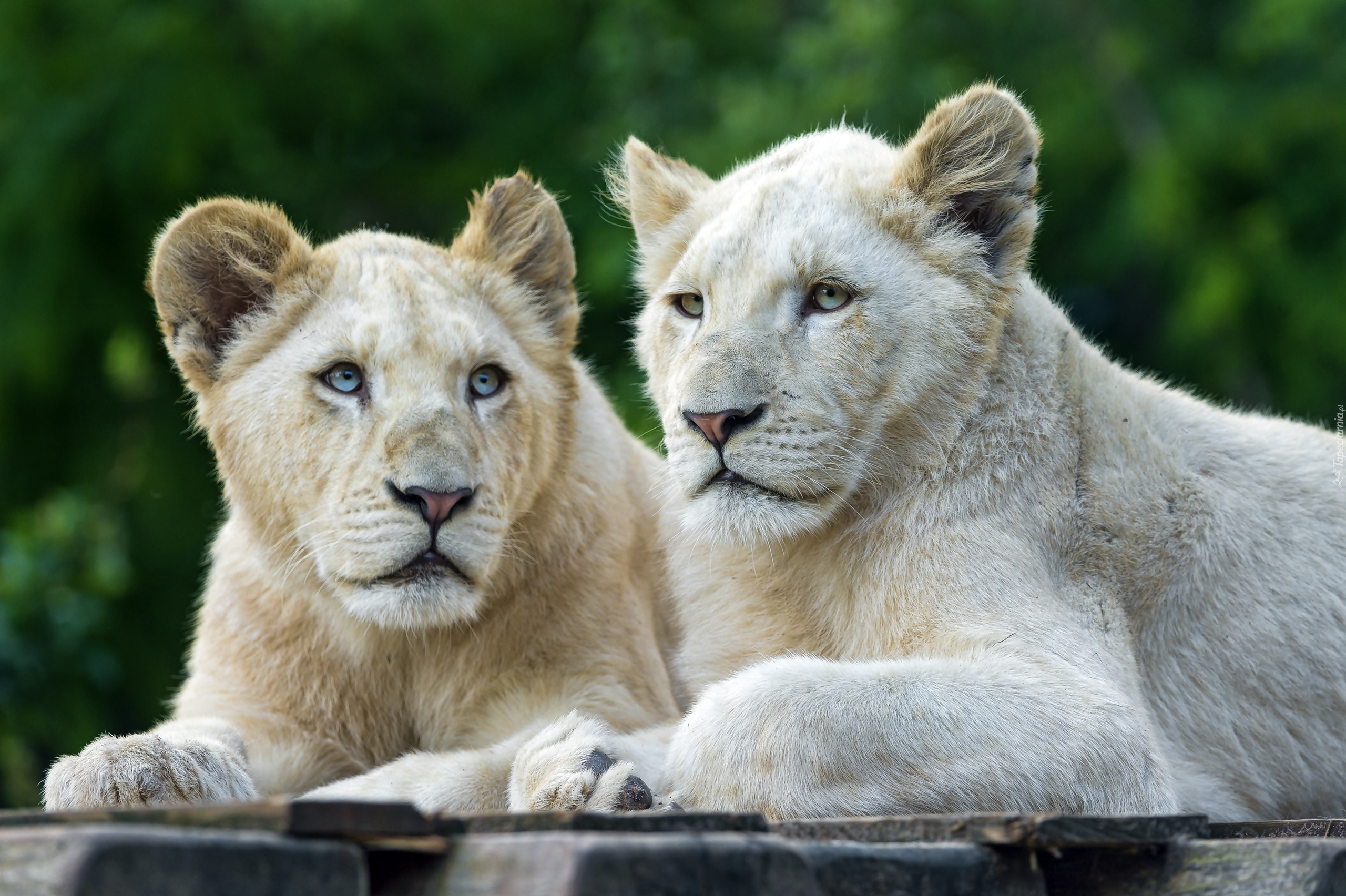 Edytor tapety: Białe lwice i ich punkt obserwacyjny