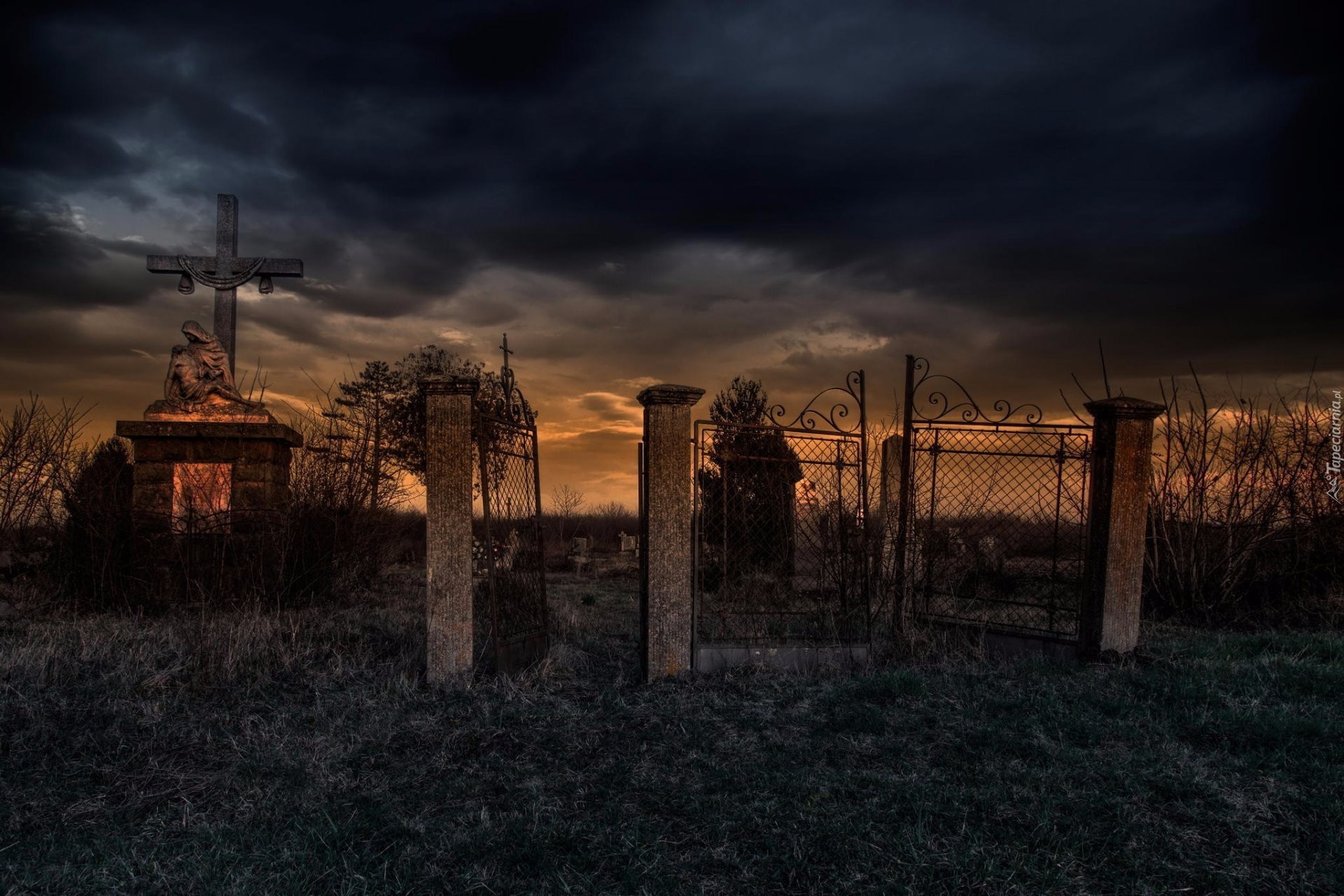 Edytor tapety: Cmentarna brama o zmierzchu