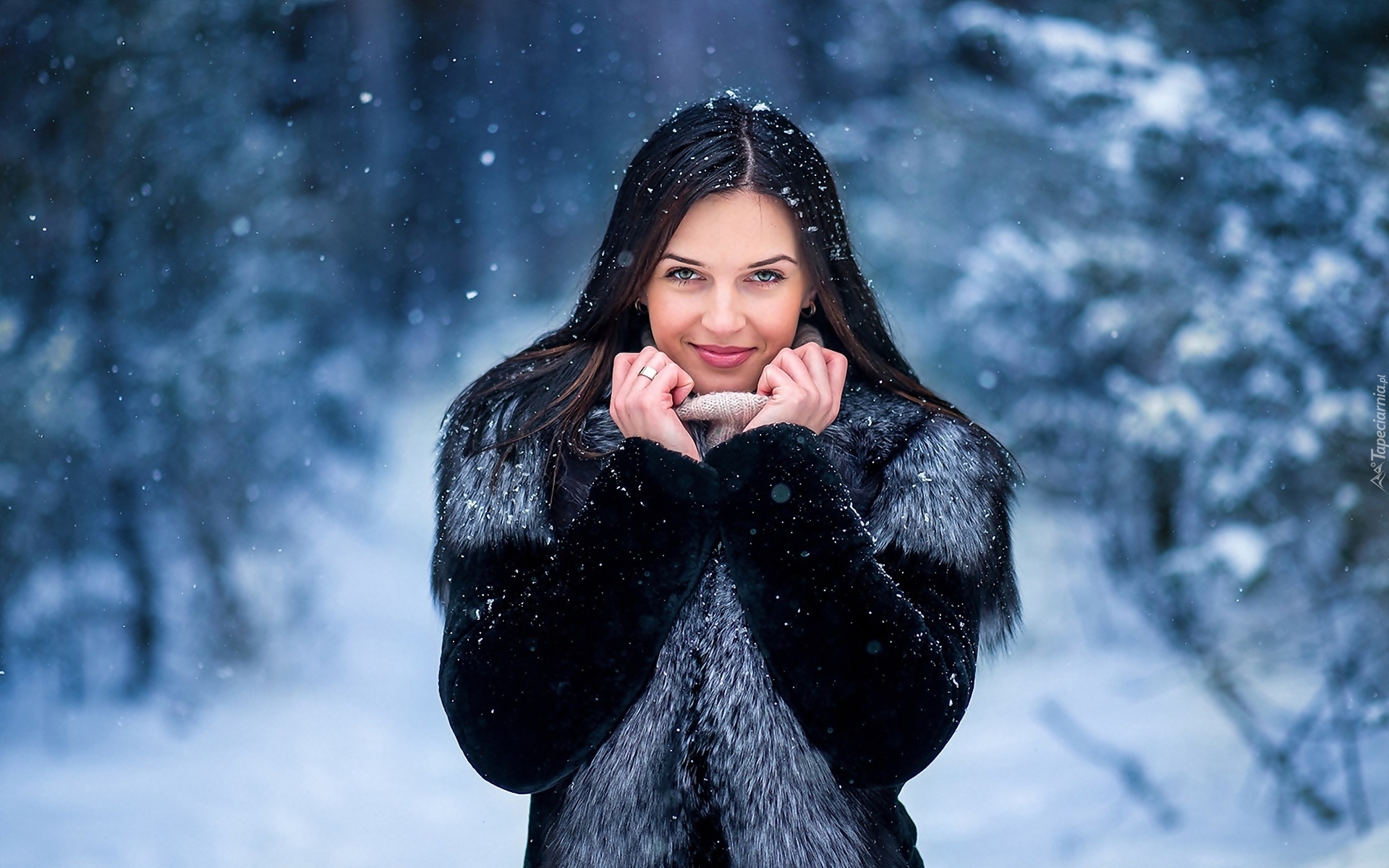 Edytor tapety: Brunetka na leśnej ośnieżonej drodze