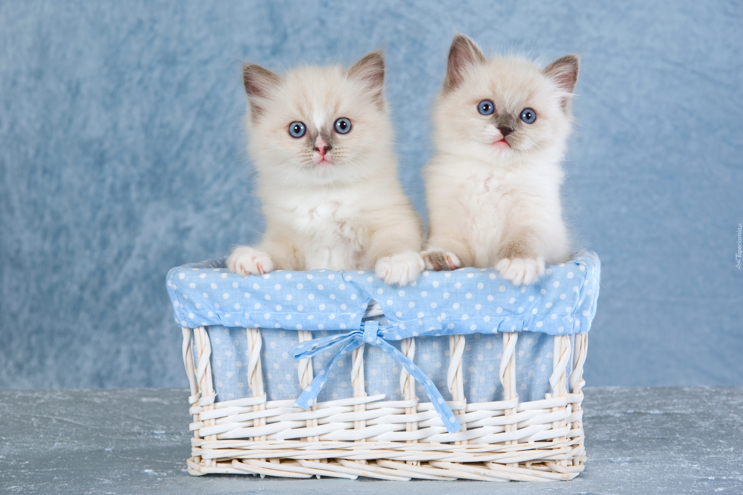 Edytor tapety: Dwa kotki ragdoll wyglądają z koszyka