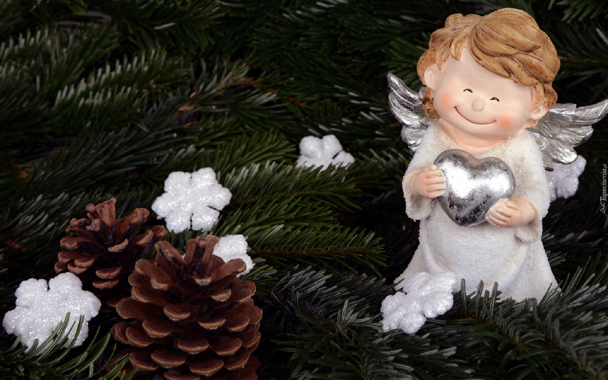 Edytor tapety: Aniołek z serduszkiem w świątecznej dekoracji